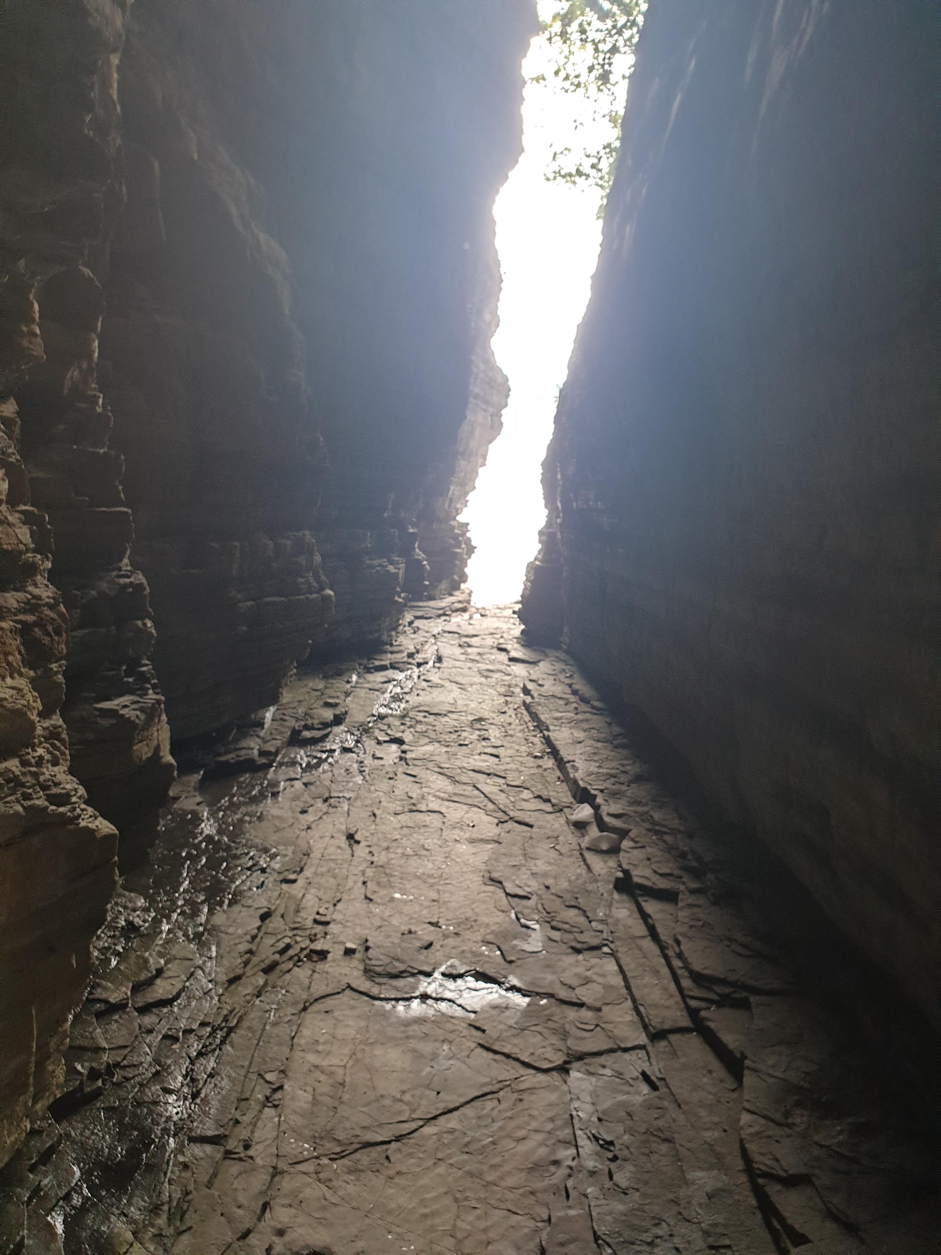 저 새발자국은 백악기 새가 박쥐처럼 저리 매달렸을 리는 만무할 테고, 듣자니 아래쪽이 떨어져 나가는 통해 그에 눌러붙은 것이 천장처럼 변해서 저리 남았다 한다.