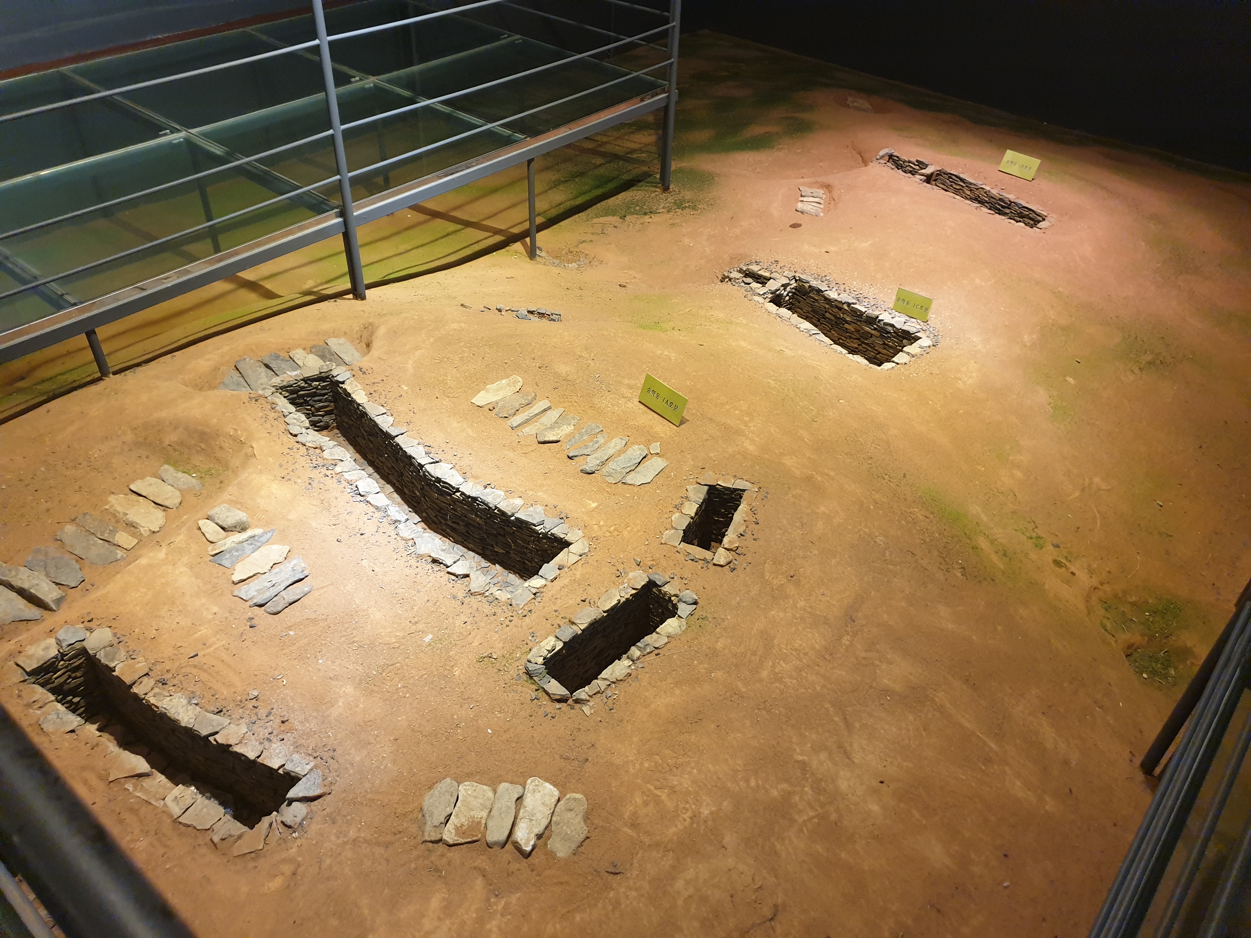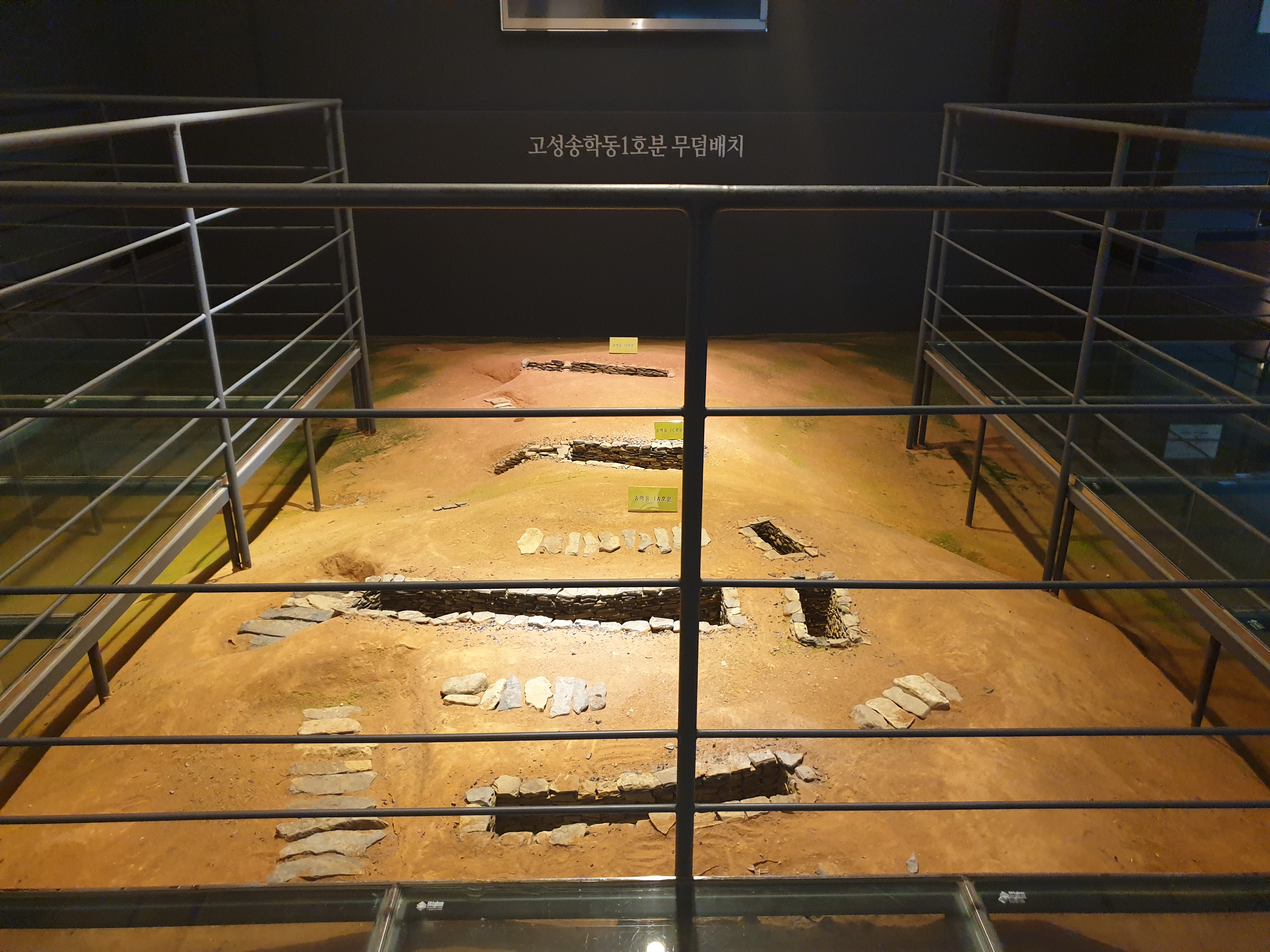 송학동고분군 중 근자 발굴조사한 이곳 1A 1B 1C호분이라 명명한 세 무덤 매장주체시설 모형으로 그 인근에 위치하는 고성박물관에서 선보인다.