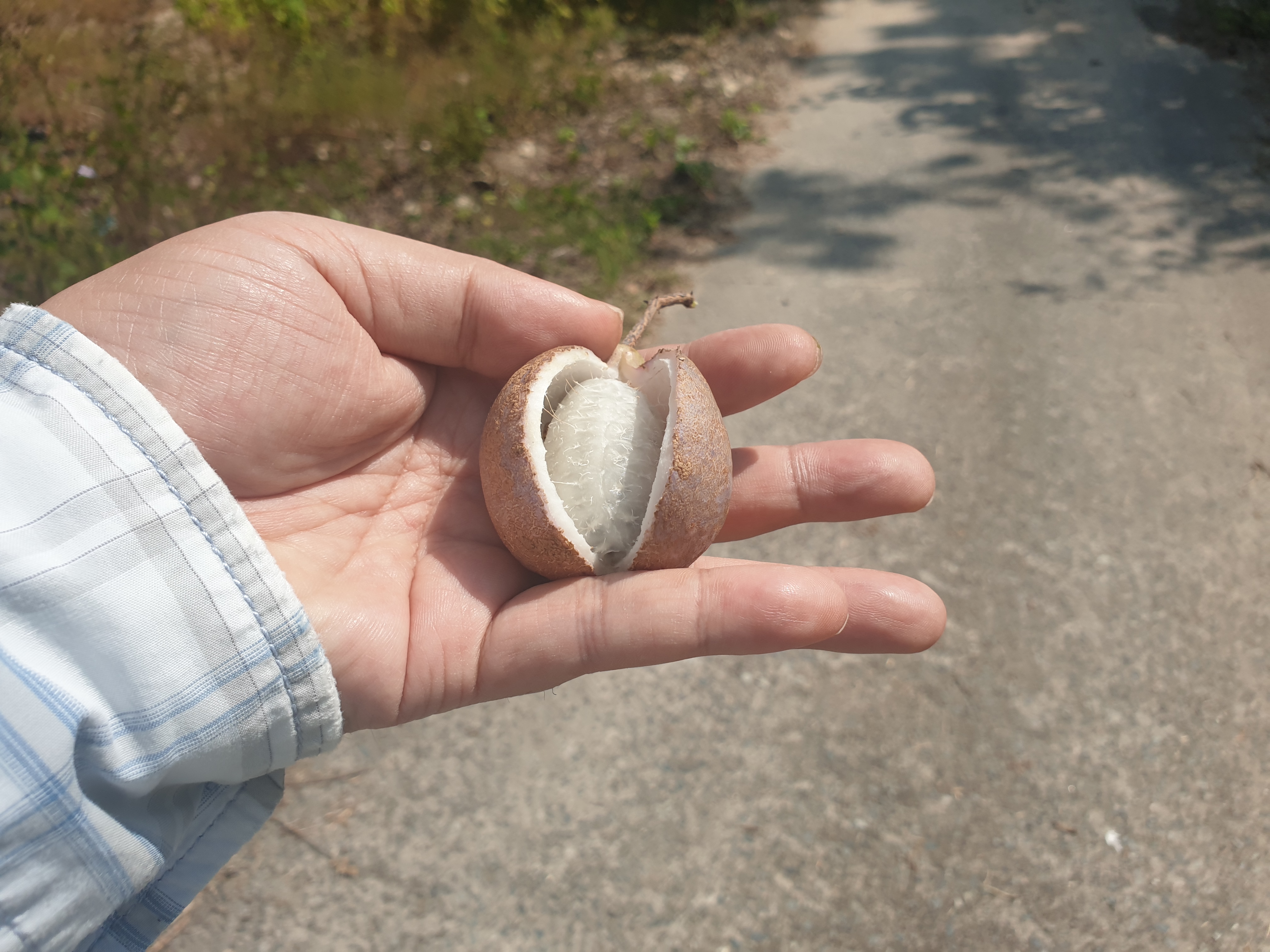 으름 따는데 대가리로 딱갑게 무엇인가 찌르는데 보니 밤송이라.
