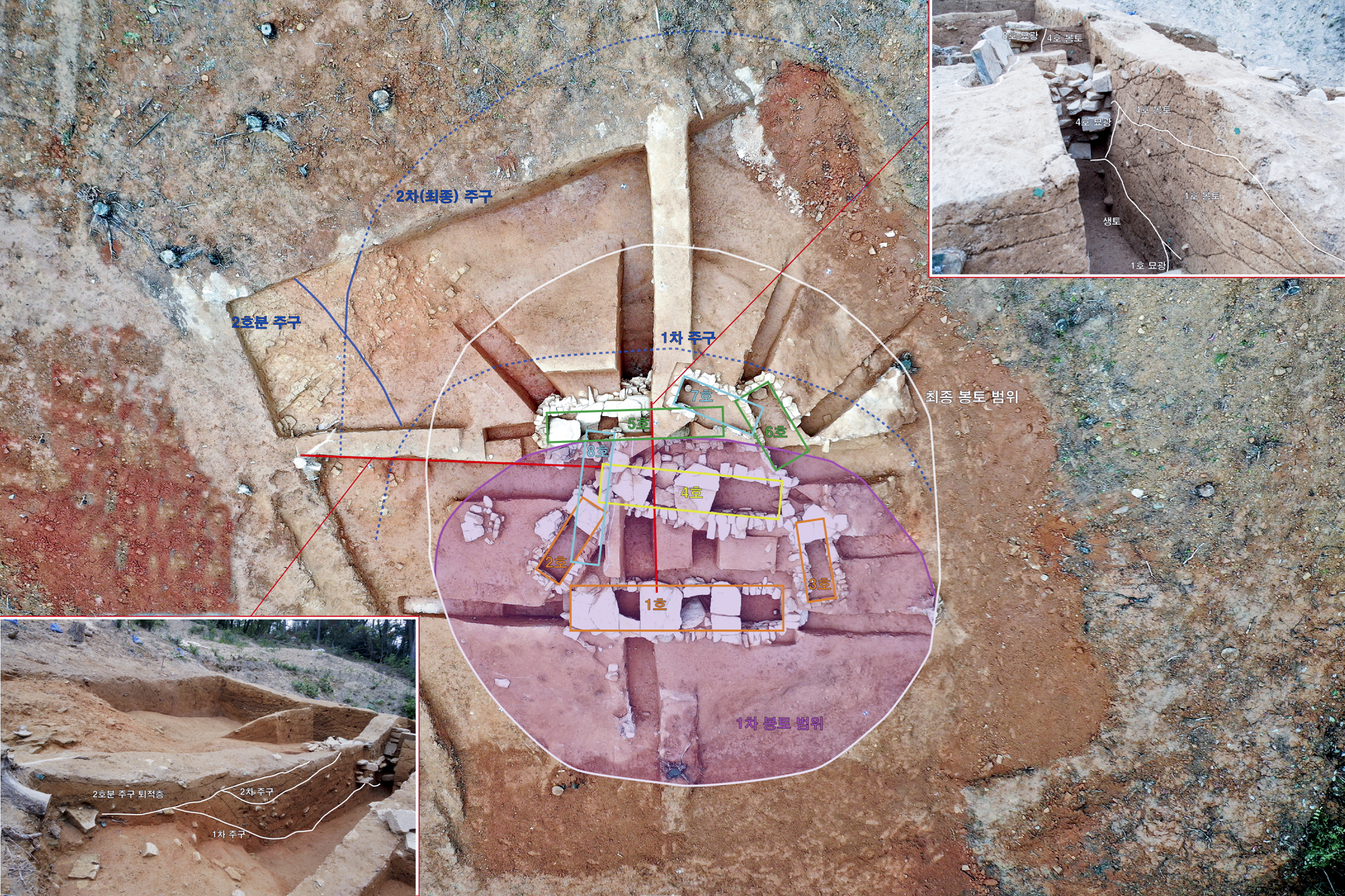 다곽식多槨式이란 결국 하나로 퉁칠 만한 봉분에다가 곽槨을 여러 개 마련한 무덤을 말하는데, 이는 비단 합천지역만 아니라 가야문화권에서는 보편적인 흐름을 보인다는 점에서 저것만으로는 특징짓기는 어려울 법한데 암튼 이번 조사 공식 의뢰처인 합천군은 그 성과를 아래와 같이 발표했으니 참고바란다. 발굴조사는 경남연구원이 했다고 한다.