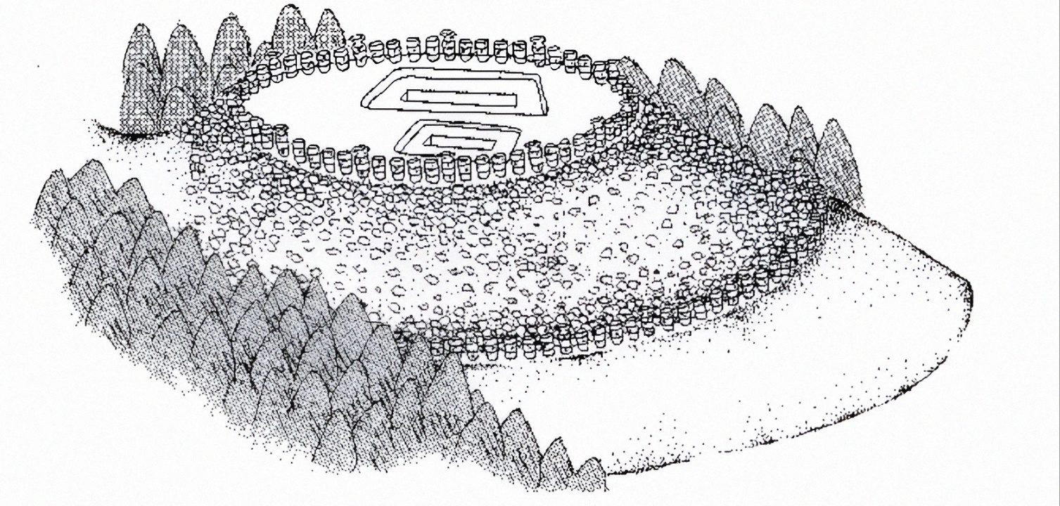 지름 약 90m, 높이 약 18m이며 2단으로 지어 쌓아올렸다고 생각된다.