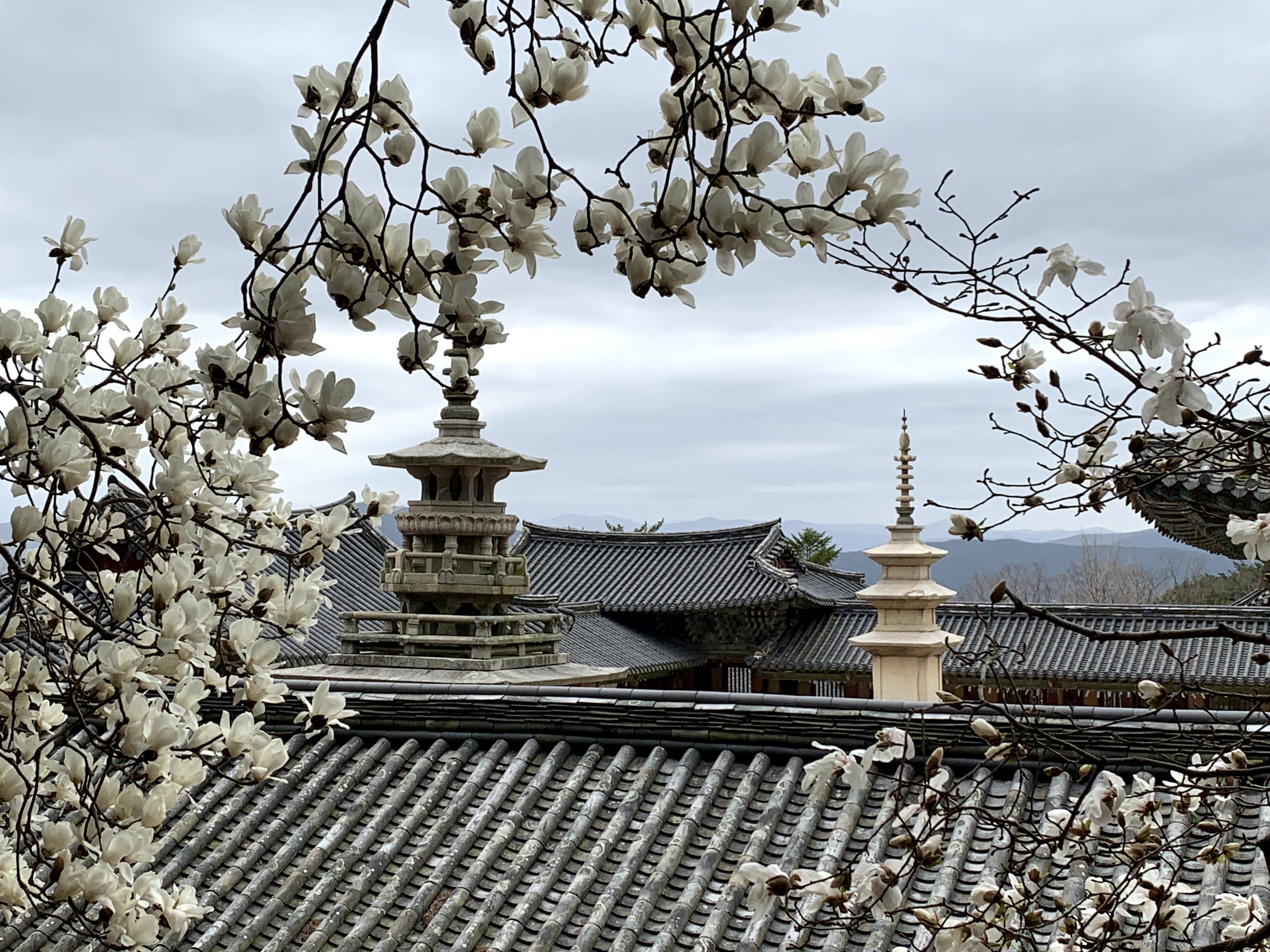 하얀 꽃잎이 까만 기와와 대조되어 더욱 귀품있게 느껴집니다.