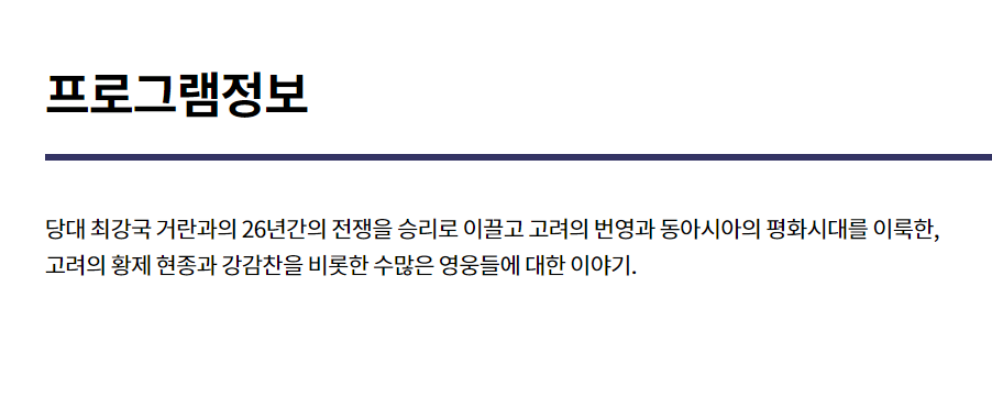 고려와 거란 사이에 벌어진 전쟁 중에서도 2차, 3차 전쟁 시기를 시대 배경으로 삼는다는데 길승수 원작 소설인 《고려거란전쟁: 고려의 영웅들》을 극화했다 한다. 이 소설도 접한 적이 없다.