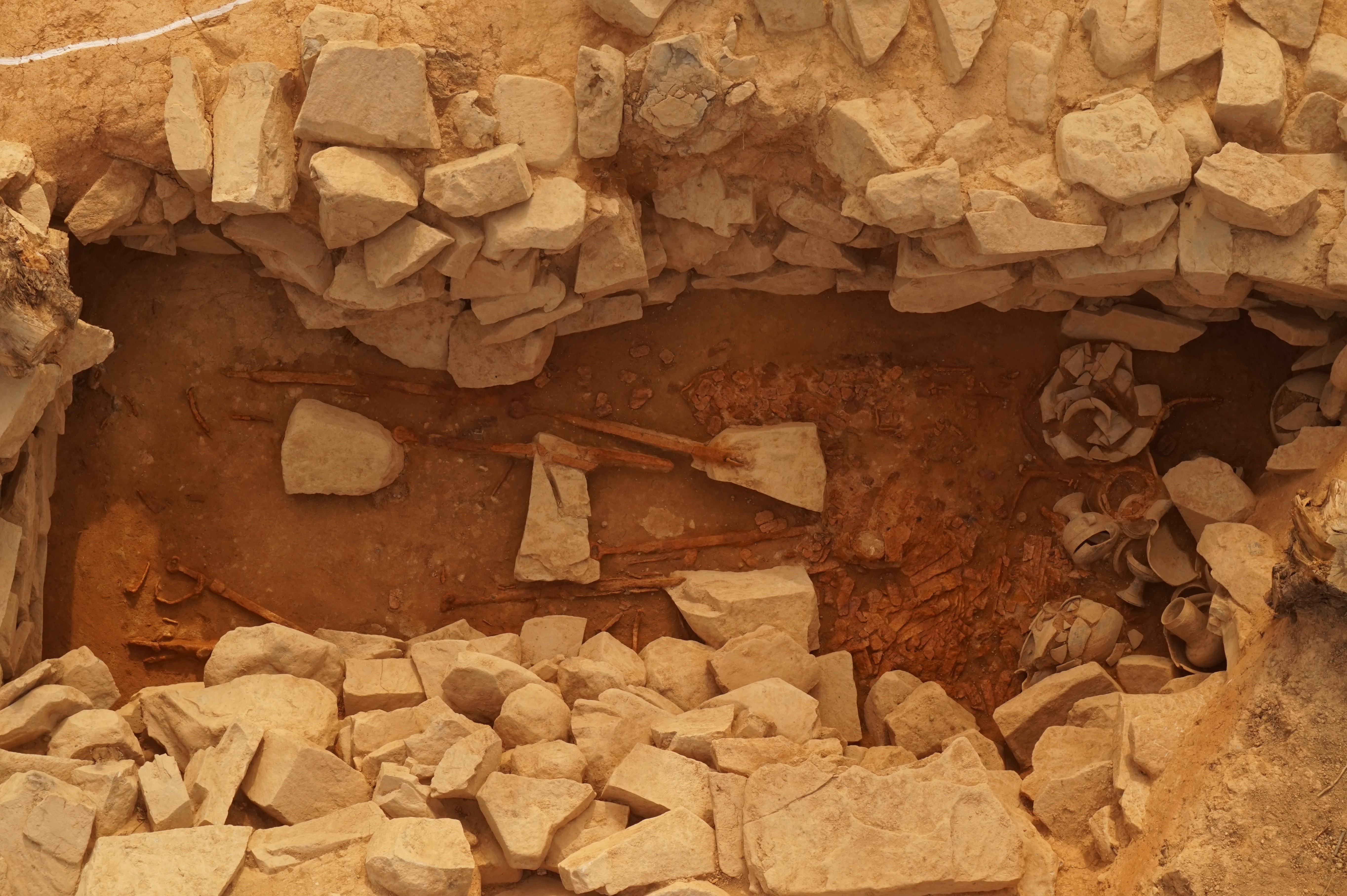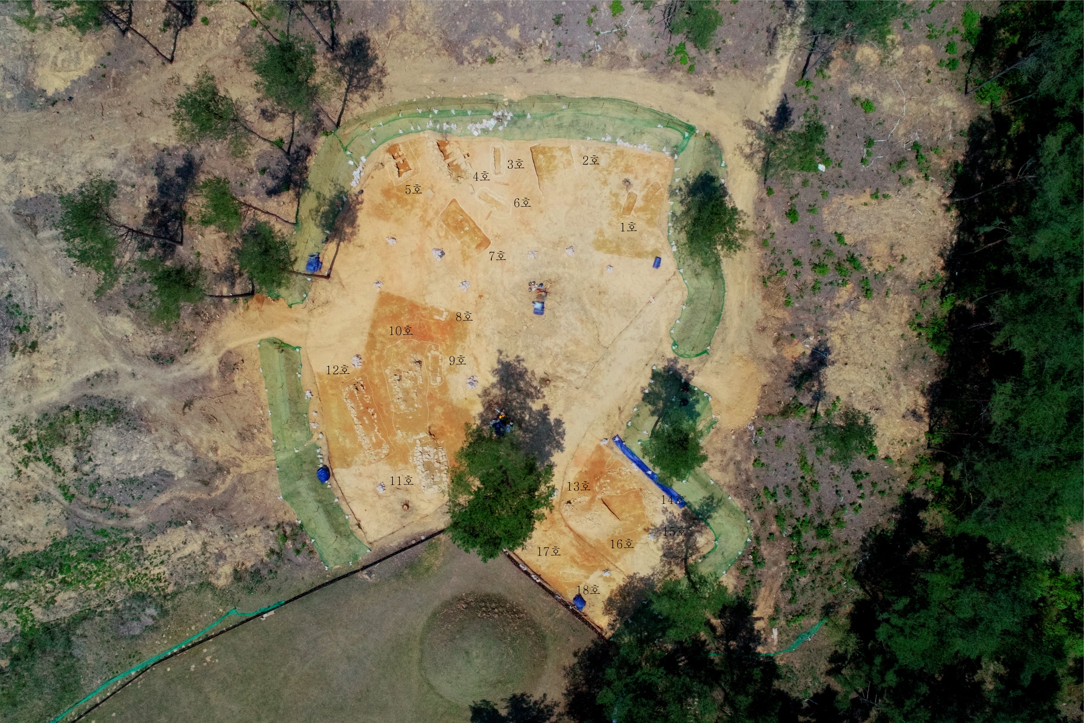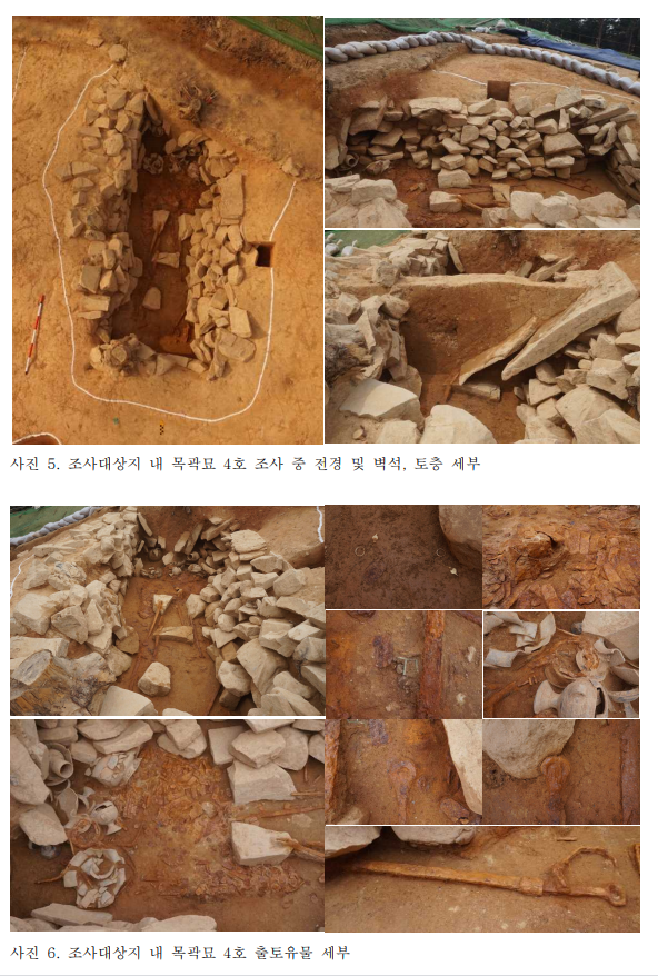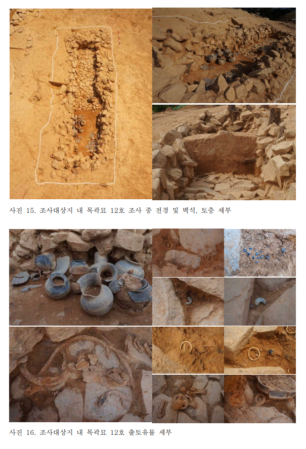 한빛문화재연구원은 조사를 통해 나무덧널무덤[木槨墓] 14기, 돌덧널무덤[石槨墓] 4기 등 총 18기의 무덤을 발견하였다.