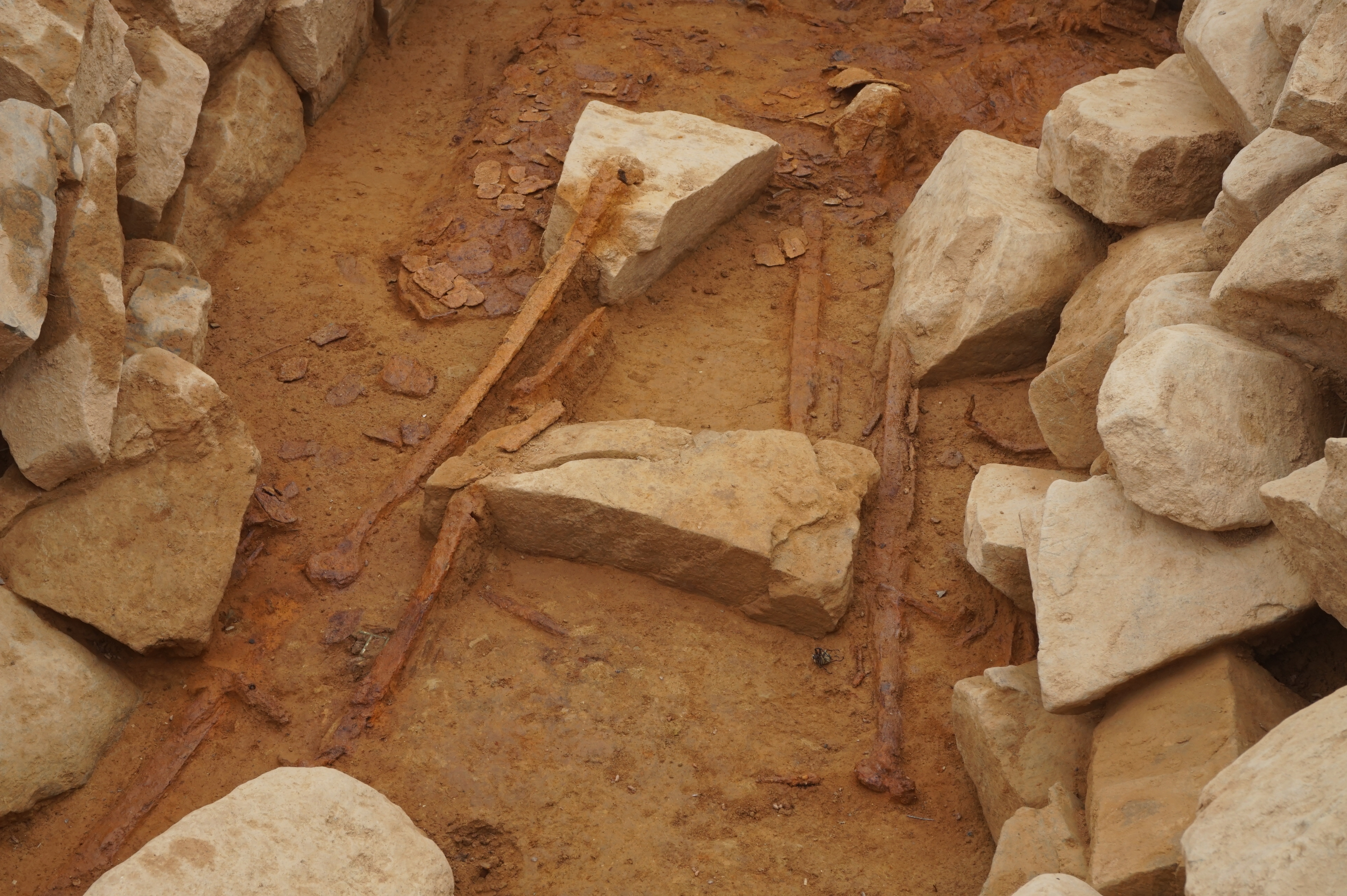 가장 주목되는 4호 덧널무덤의 경우 동쪽에서 금귀걸이 1쌍, 중앙에서 동쪽으로 치우쳐 고리자루큰칼 및 큰칼 6점, 서쪽에서 말갖춤과 무기류, 토기류 등 다수의 유물이 확인되어 주검의 위치와 유물의 부장형태를 알 수 있는 중요한 자료가 될 것으로 판단된다. 큰칼 6점과 투구 및 비늘갑옷 등의 유물은 무덤의 주인이 장군의 지위임을 알려준다.