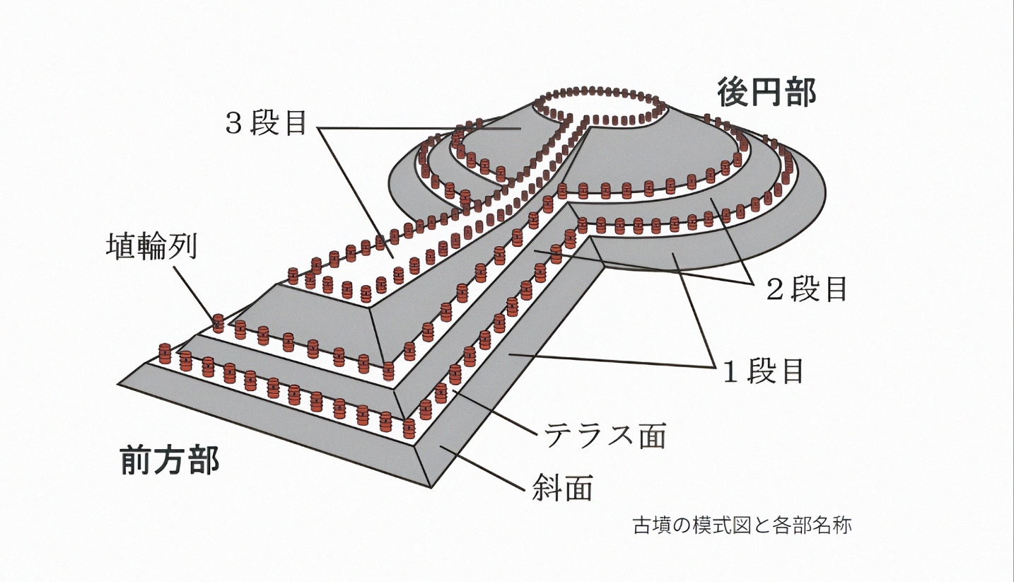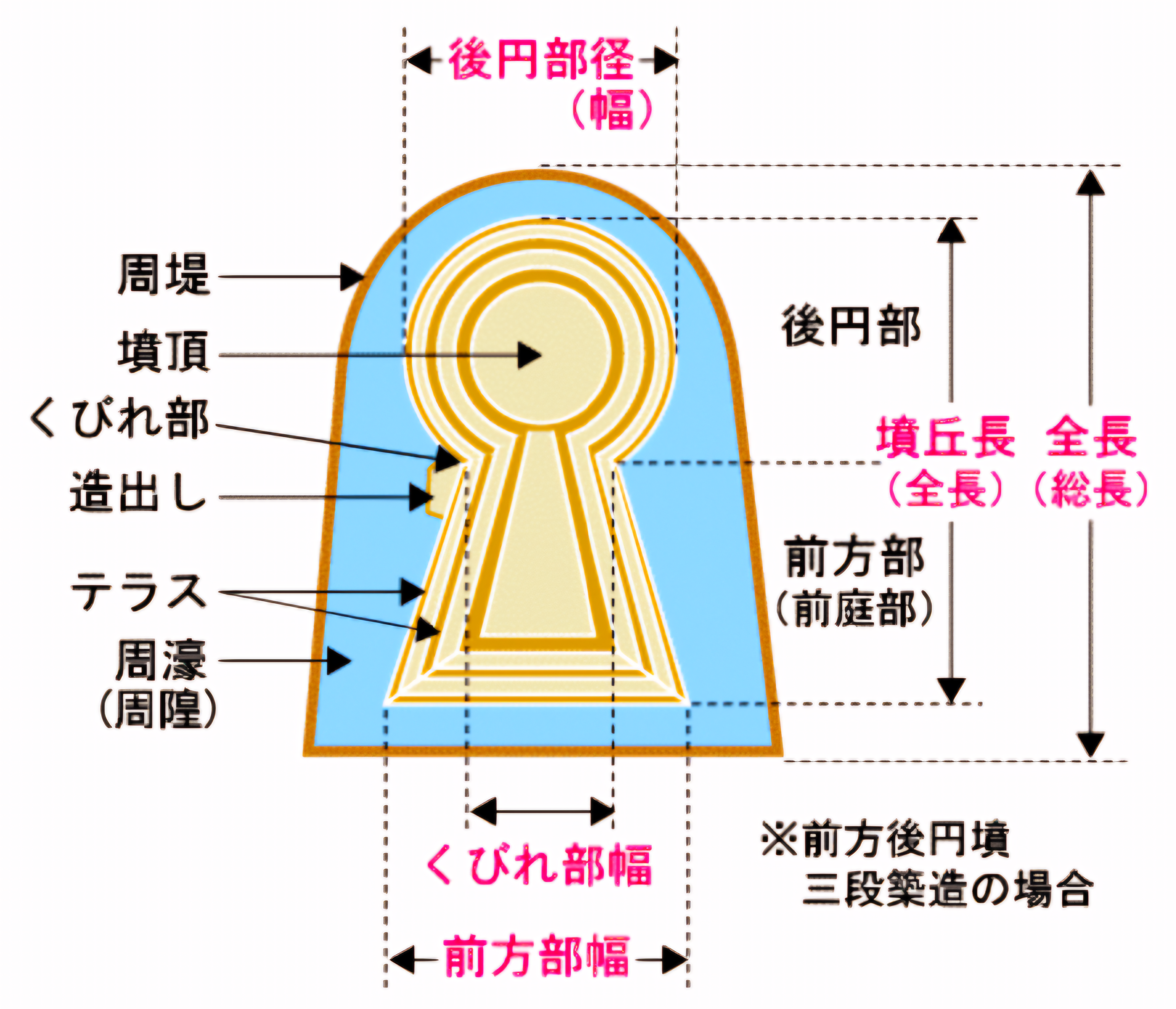 나아가 전방후원분에서는 또 쿠비레부くびれ部 라는 말도 자주 마주하거니와, 이건 따로 학술적 고고학적 개념이라기보다는 후원부와 전방부를 연결하는 지점 혹은 경계라 생각하면 되겠다. 허리춤이다.