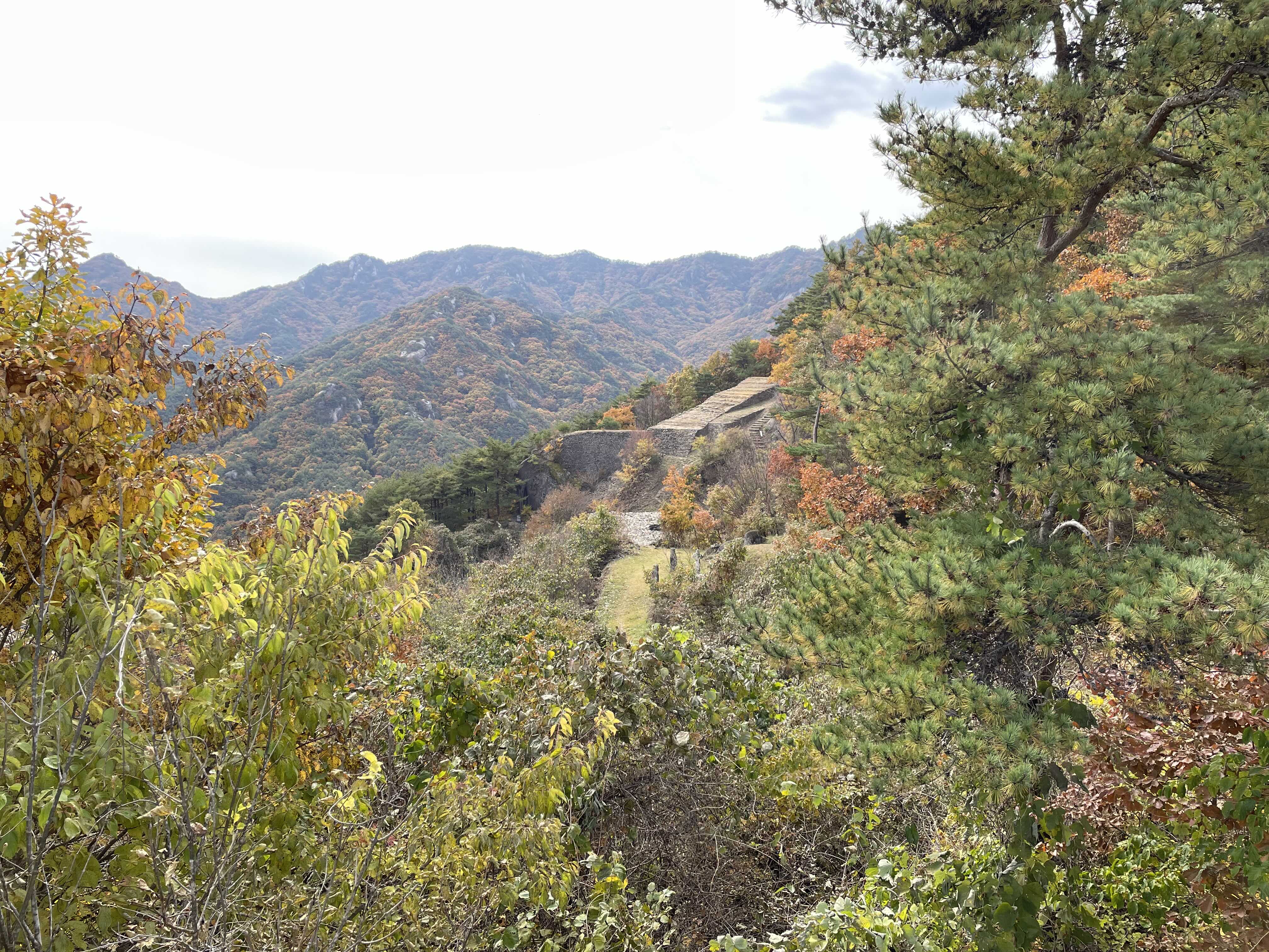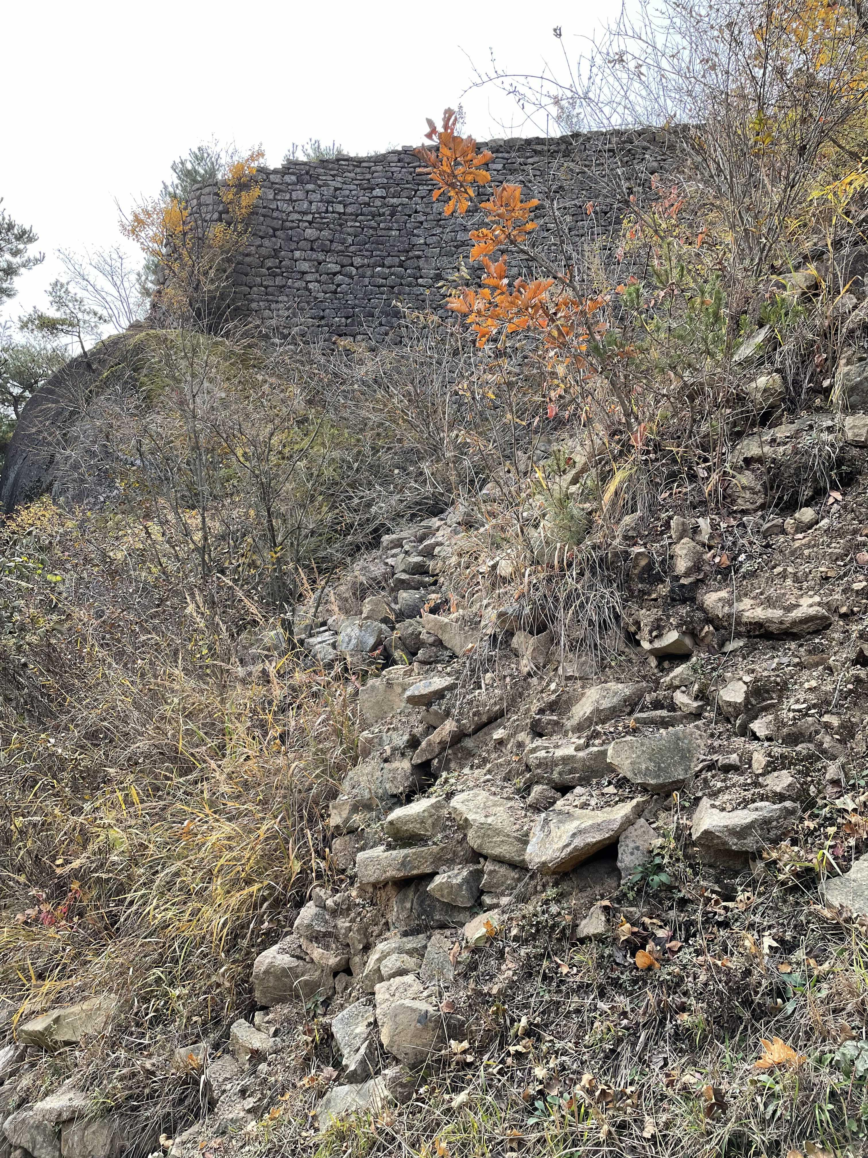 산의 암벽은 암벽대로 이용해 성을 쌓은 모습이 인상적입니다. 무지하게 튼튼한 암벽이 있는데, 뭣하러?!