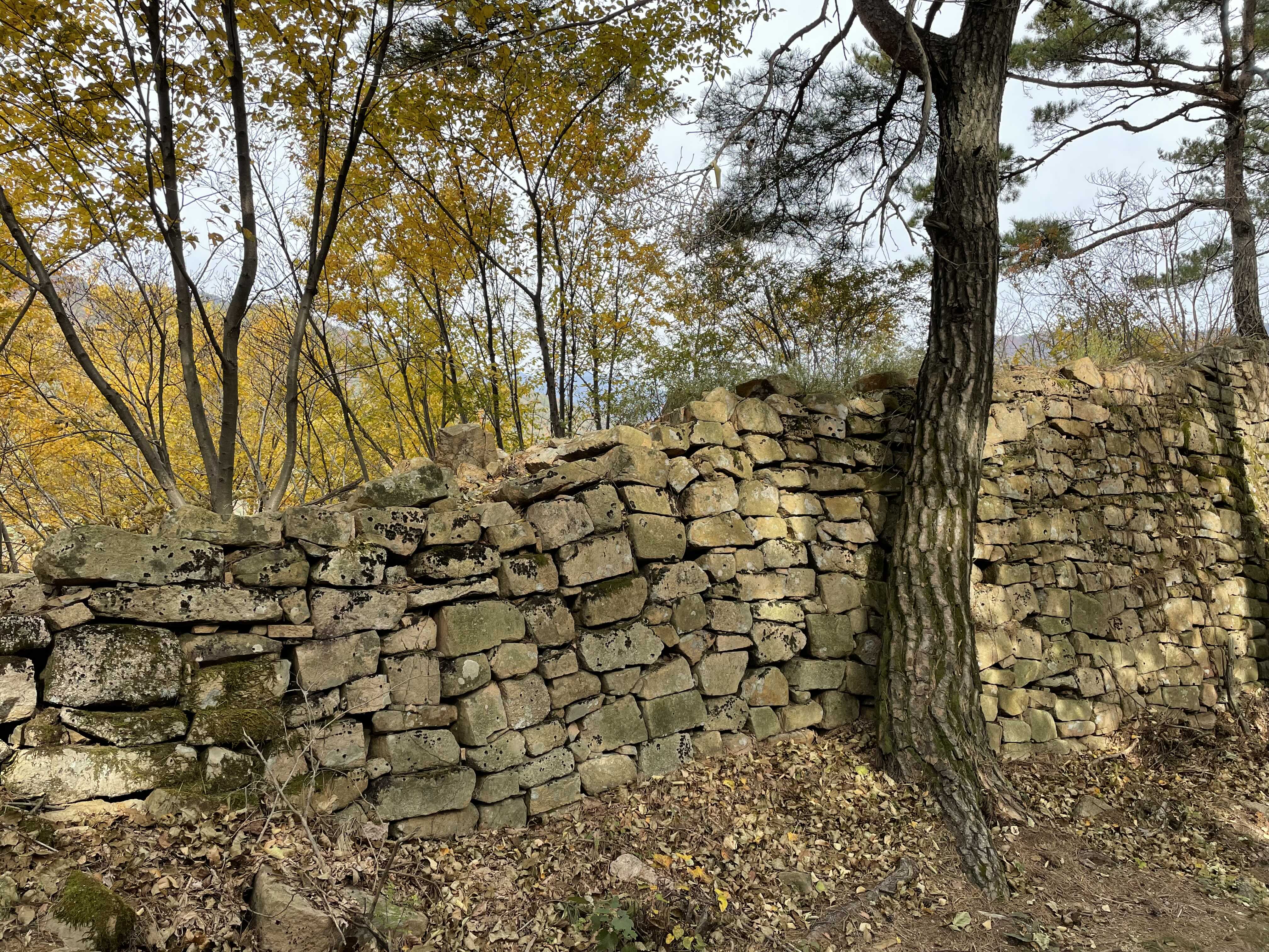 성벽 일부가 허물어진 모습을 볼 수 있습니다.
