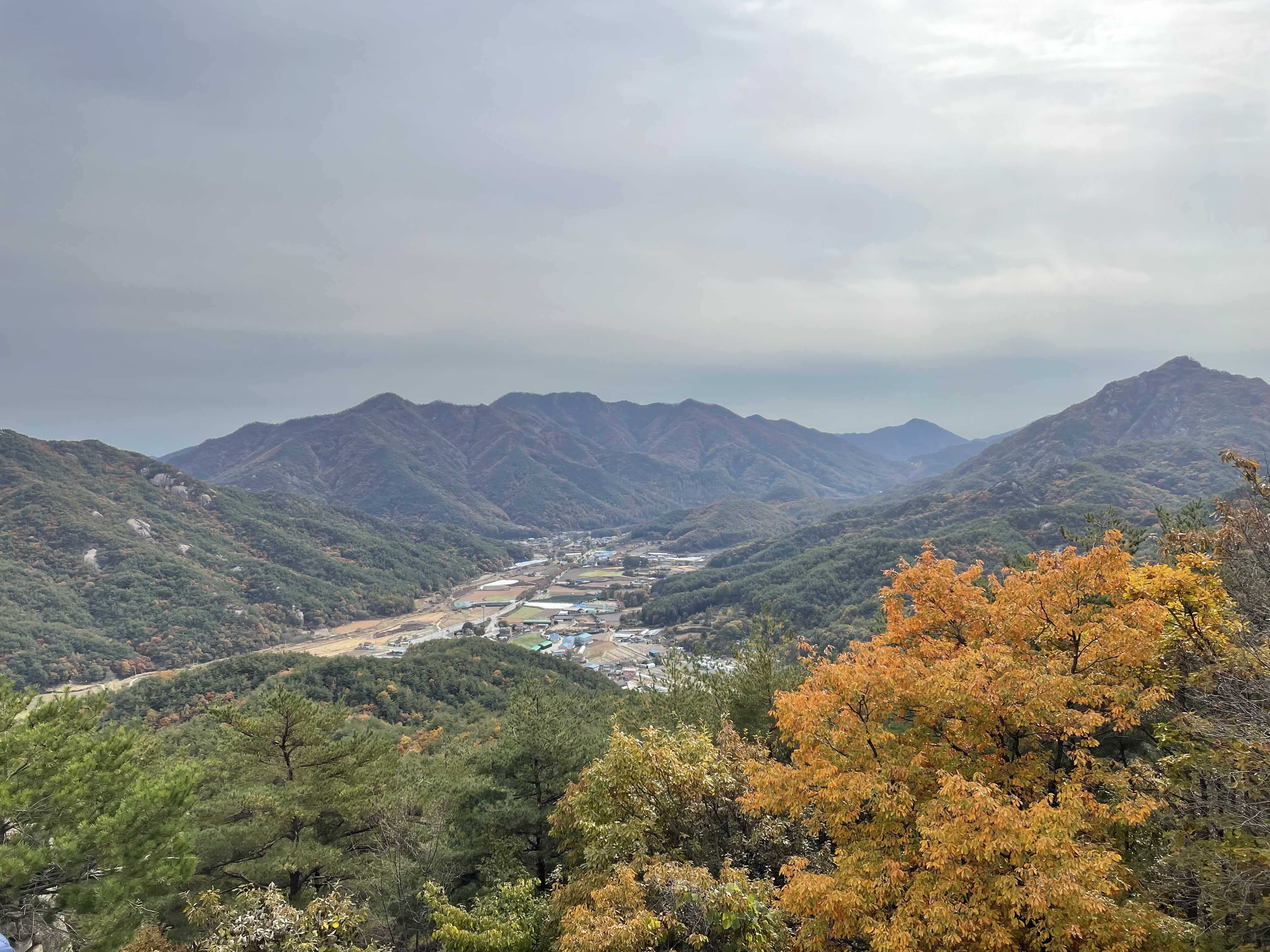 여기서 내려다 보면 화북면을 대를 포함해 겹겹이 산들이 쭉 보입니다.