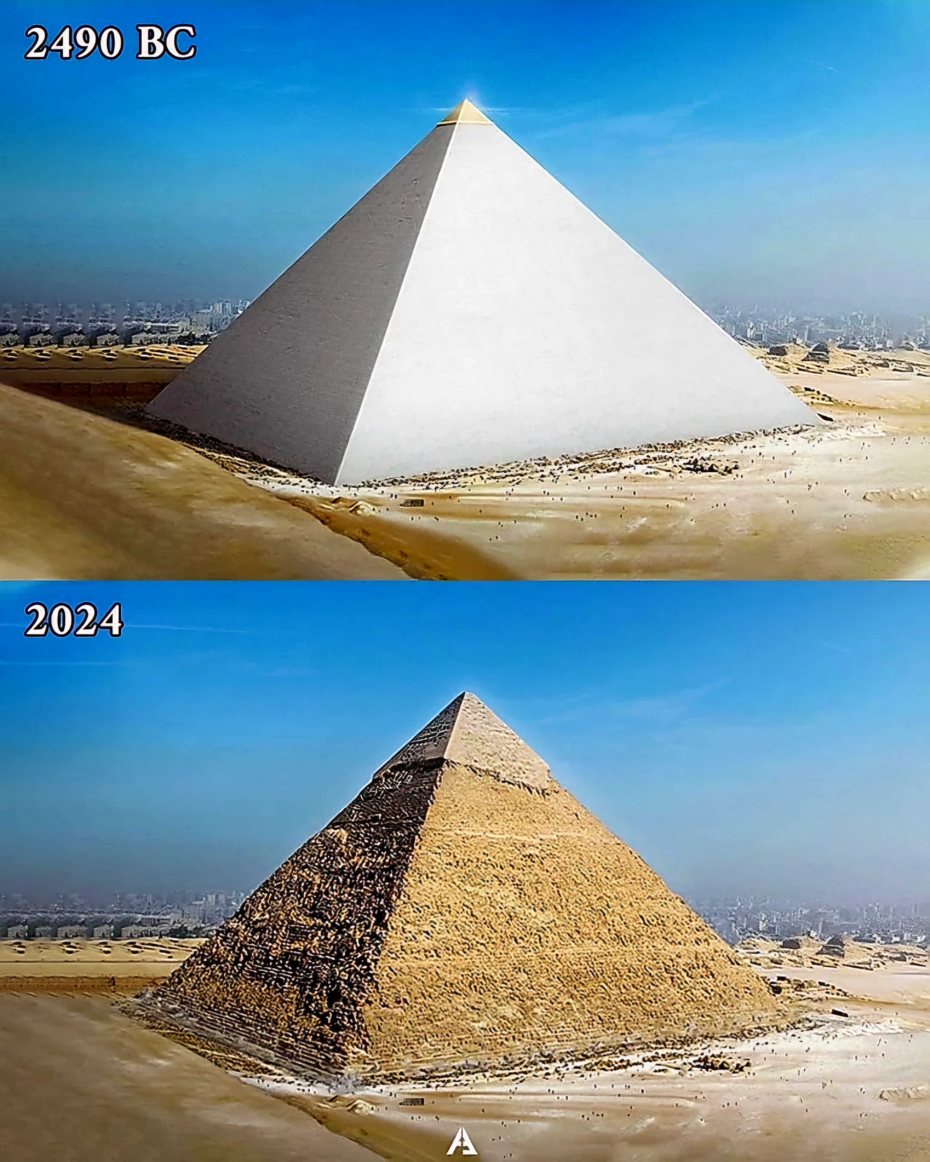 완공 직후 피라미드 모습이 꼭 상단과 같다 할 순 없겠지만 기본에서는 저랬다.