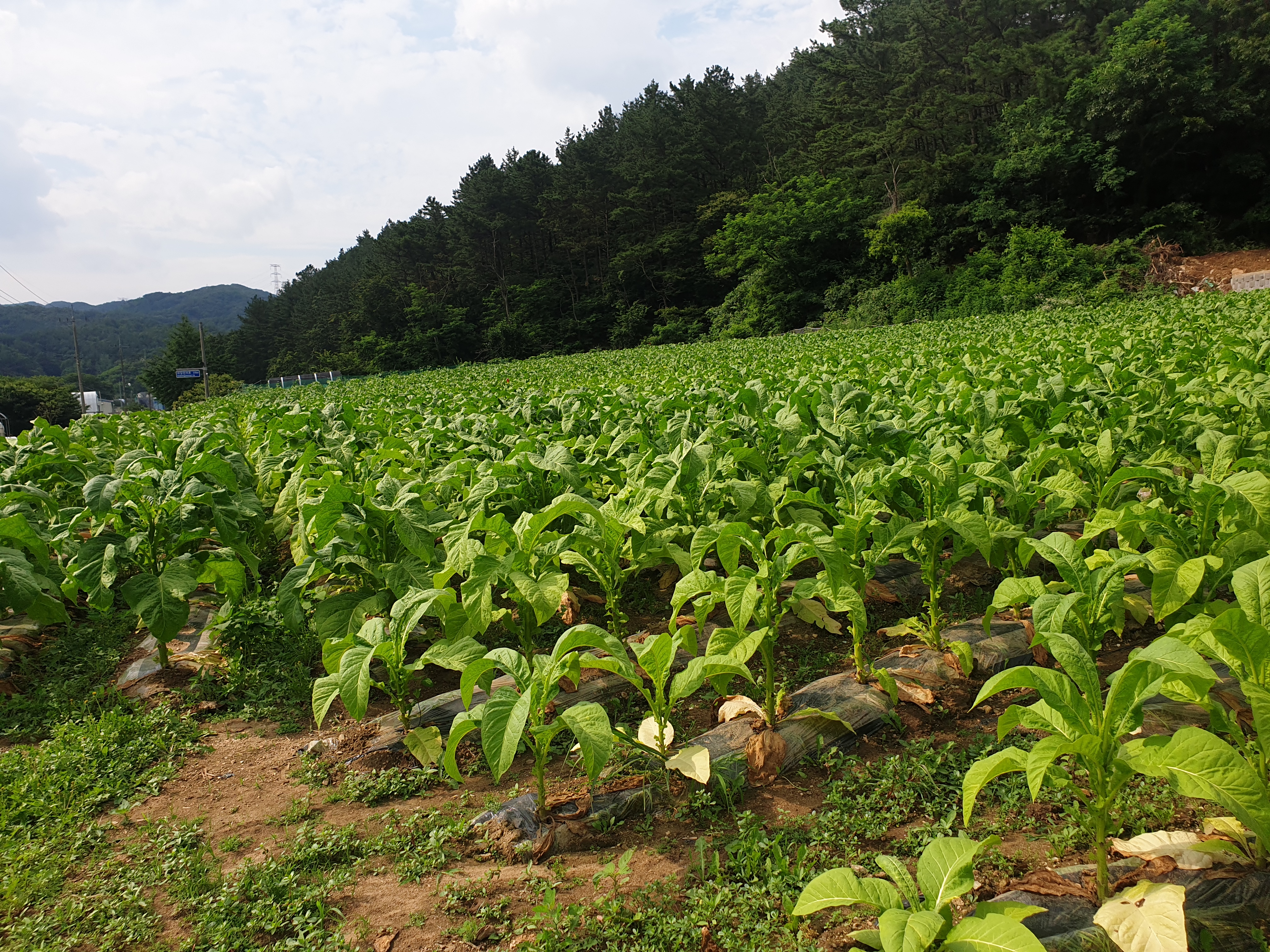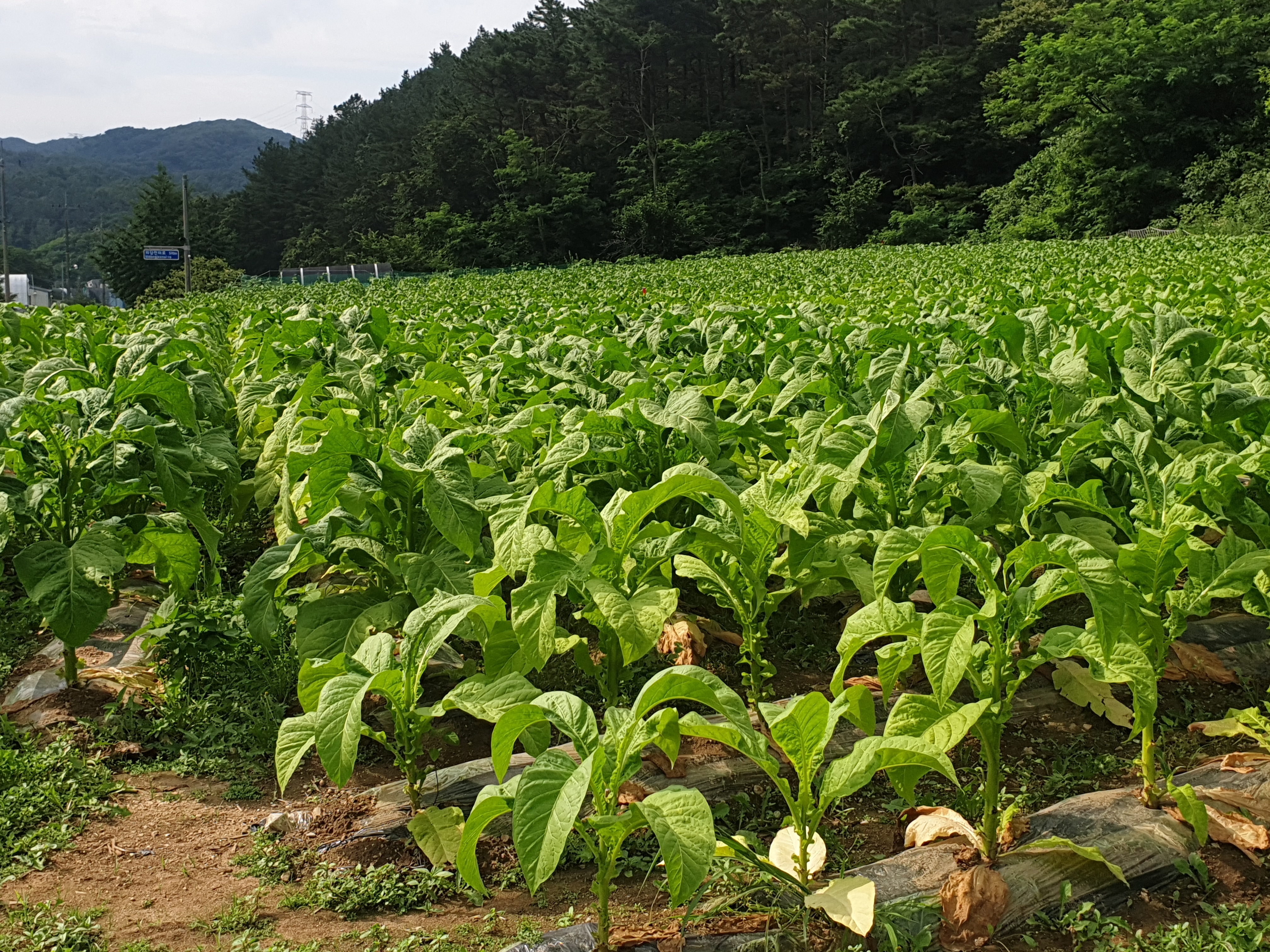여직 담배 농사하는 데가 있나 보다 하며 차를 급정거하고는 살피니 영락없는 담배밭이다.