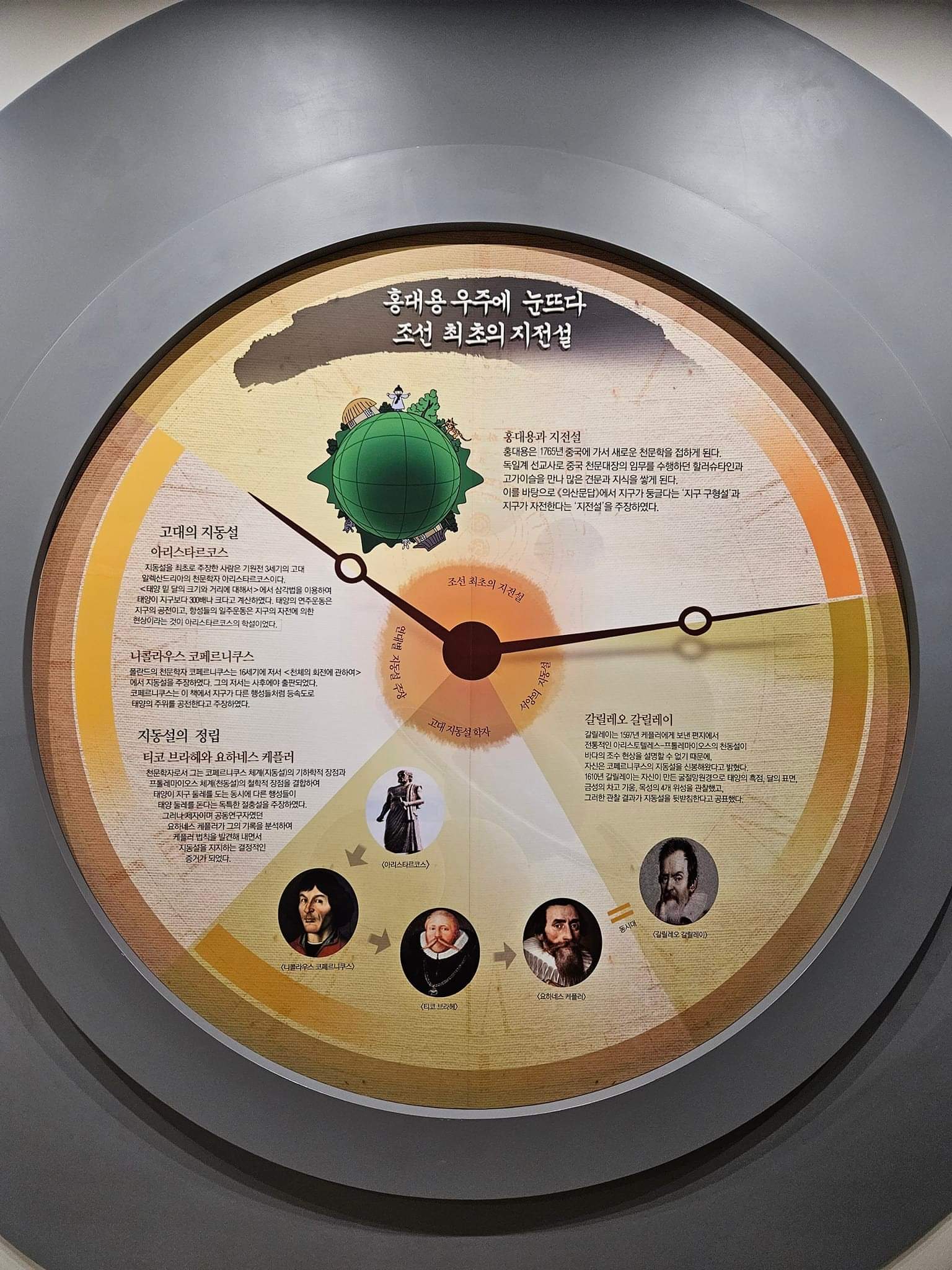 홍대용의 생애, 그의 사상, '과학' 체험기구, 천문 관측 같은 데서 보이는 우리 조상의 과학정신, 태양계의 구성과 별자리...과학관 안은 이런 구성이었다.