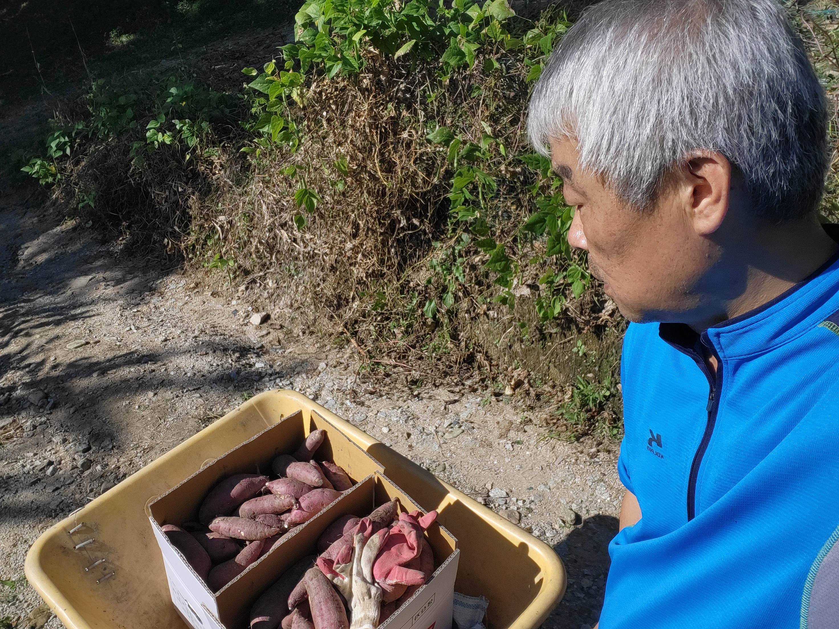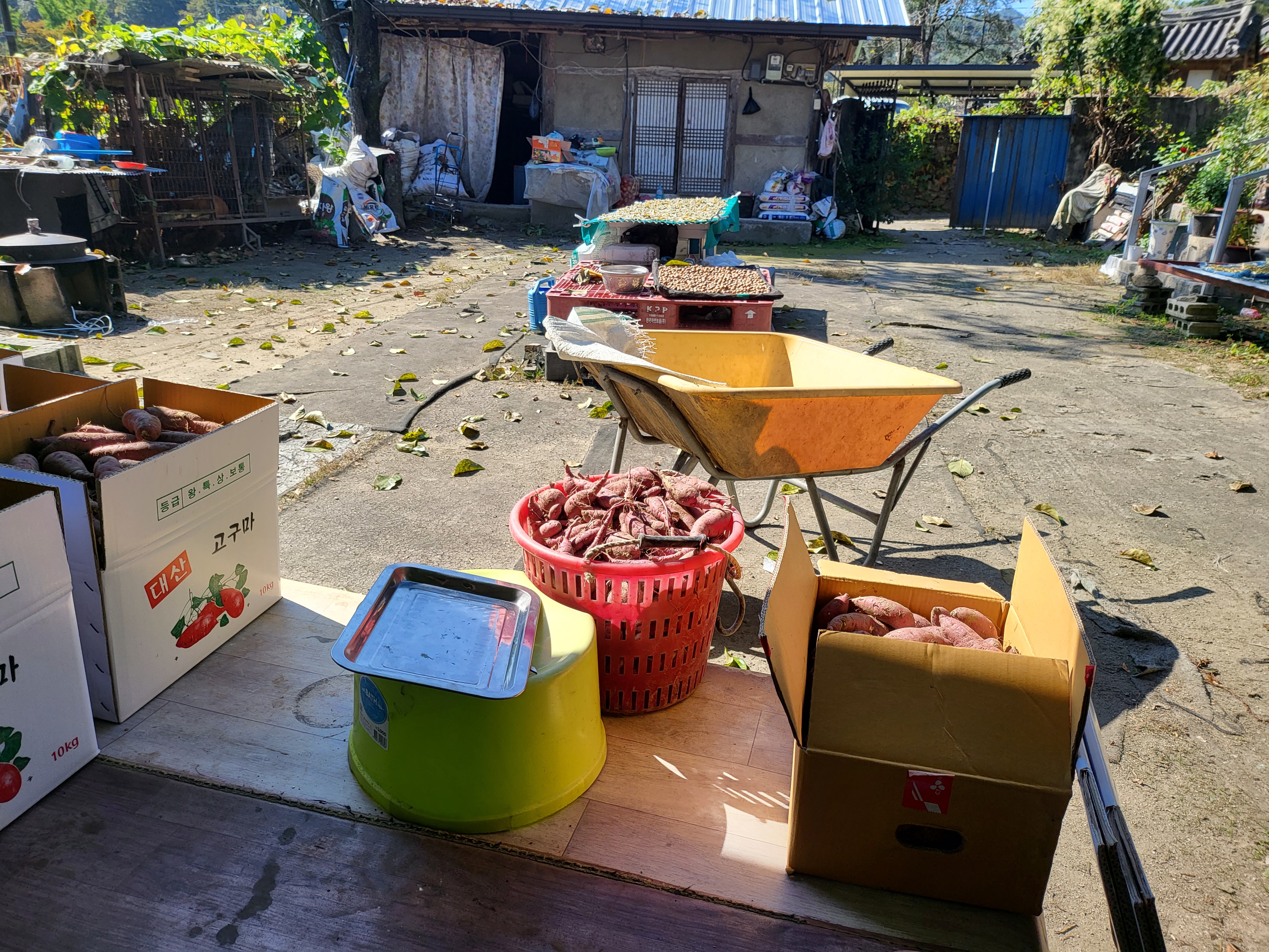 첫째, 차 트렁크엔 갓 캔 붉은 고구마가 한 박스 그득이요