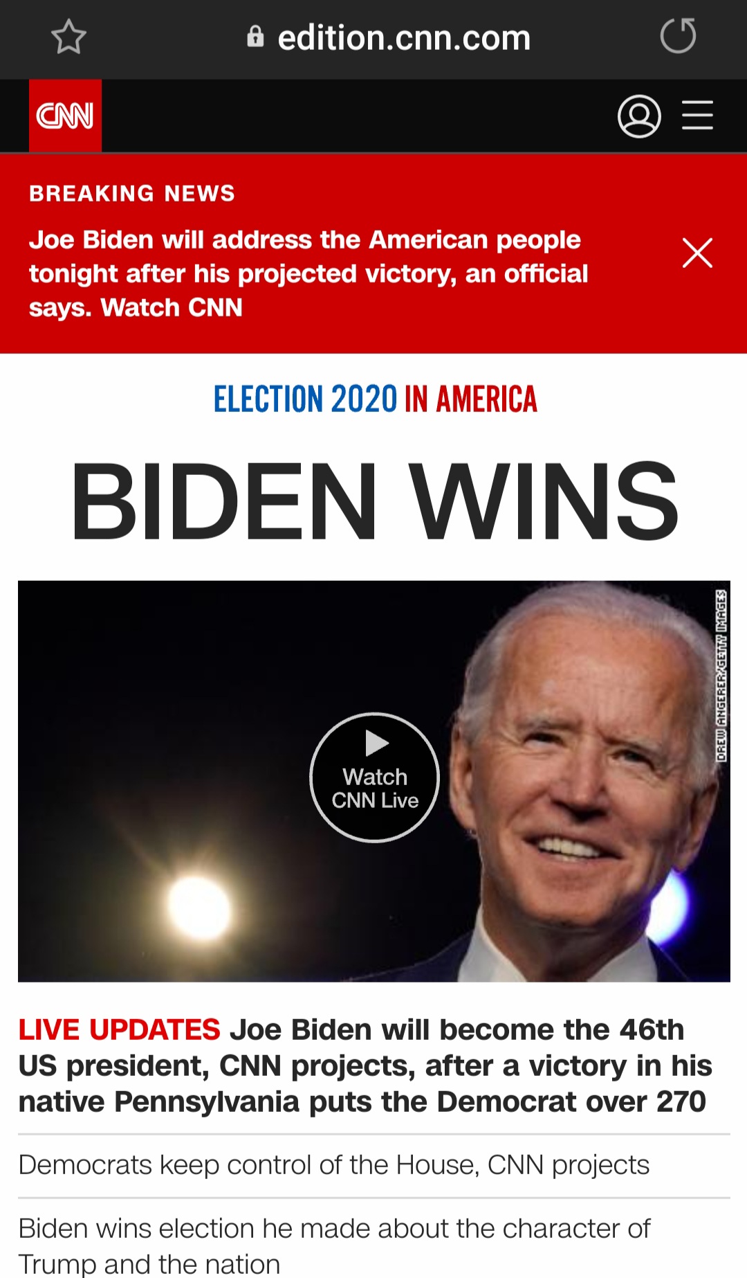 뻔한 결과였지만 그 뻔함이 공식화하기까진 적지 않은 곡절이 있었으니 마침내 참다못한 언론들이 제46대 미합중국 대통령은 조 바이든이라 선언하고 나선 것이다.