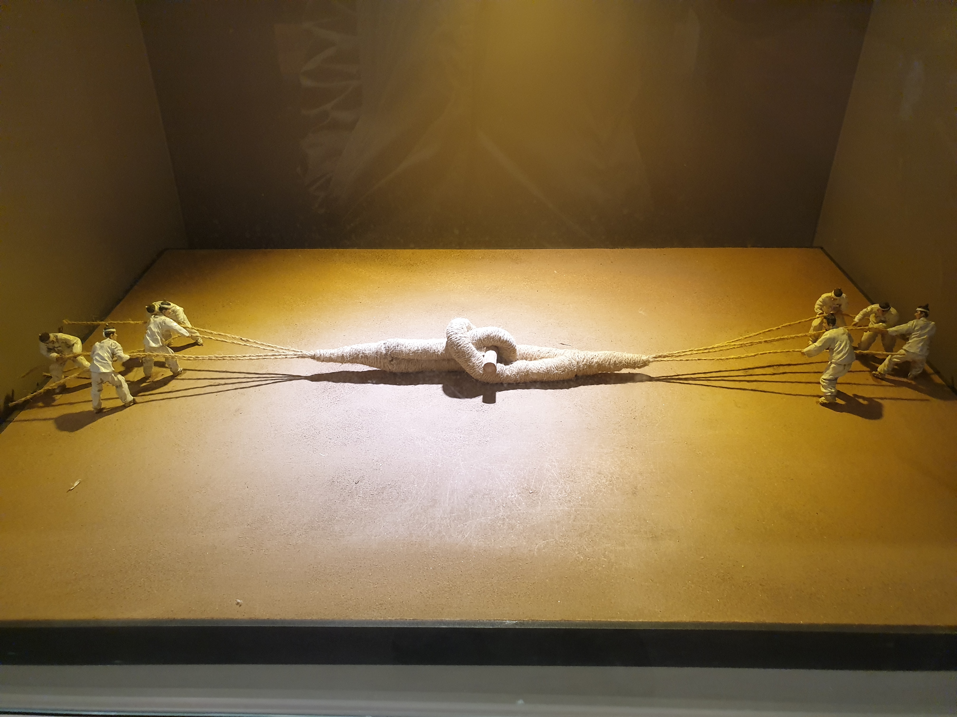 뒤로 살짝 돌아보니 museum 앞 u자를 누가 떼먹었다. 사탕으로 만들었나 보다.