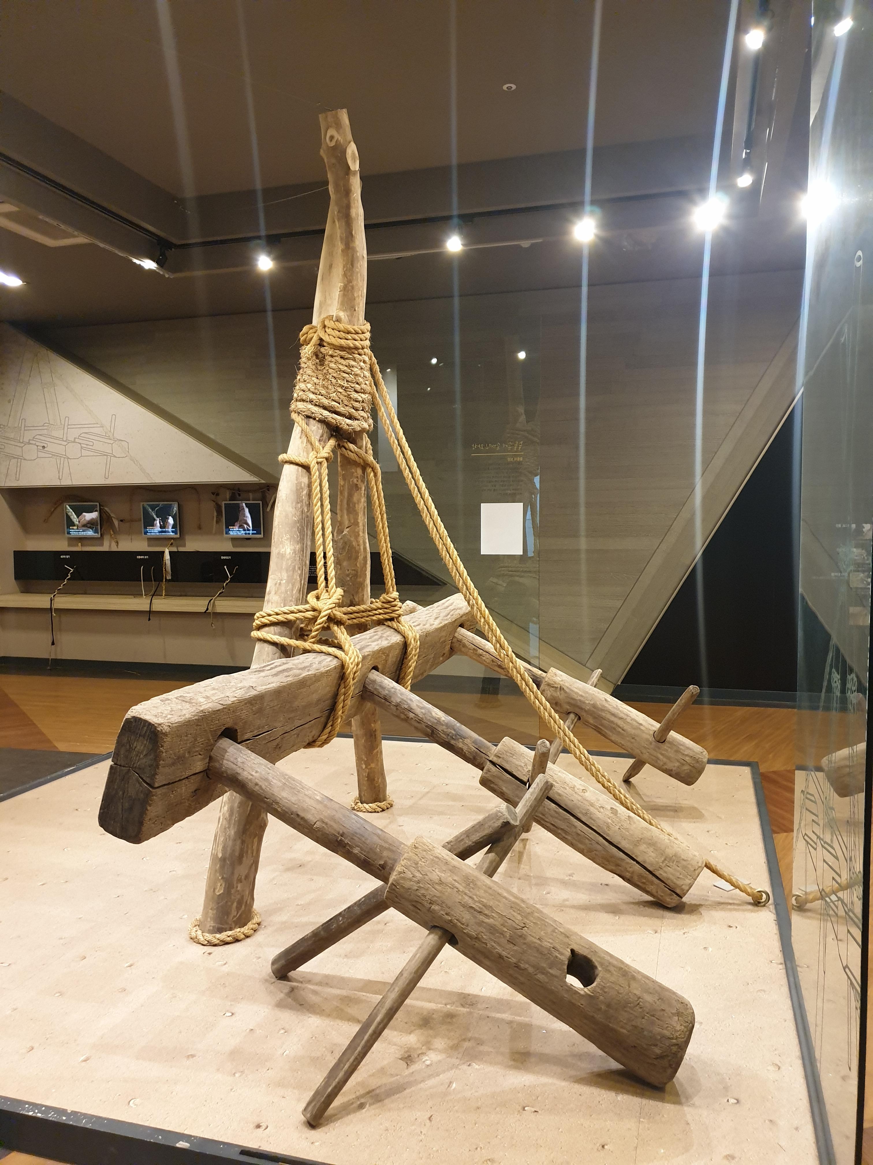 염전 고르기 기구라는데 도로 닦는데도 썼을 법하며 바지개는 용도가 좀 다른갑다.