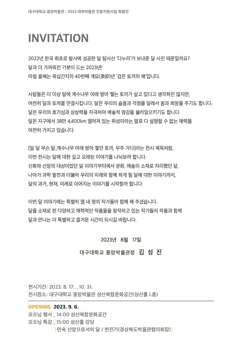 ■ 전시기간: 2023. 8. 17. ~ 10. 31. 10:00~17:00(기간 중 평일, 공휴일 휴관)
