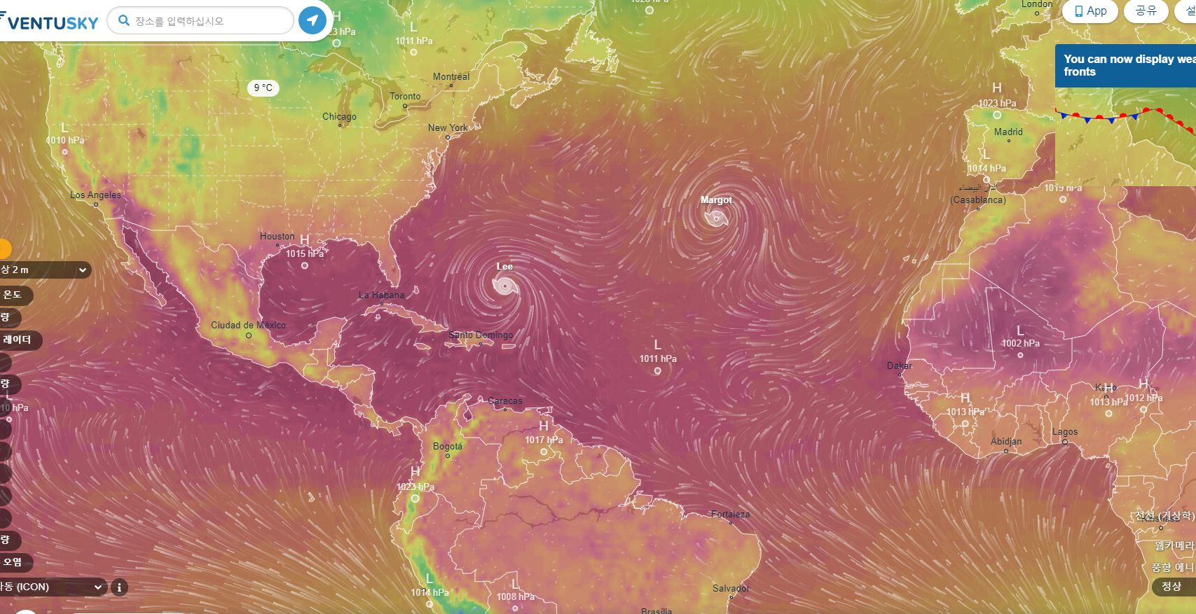 대신 대서양 쪽으로 나아가니 허리케인 두 마리가 보인다.