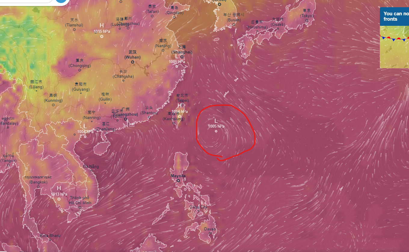 우리 쪽 사정을 보니 대만 남동부 해상에 뭔가 태풍 하나 발달하지 않나 하는 느낌을 준다.