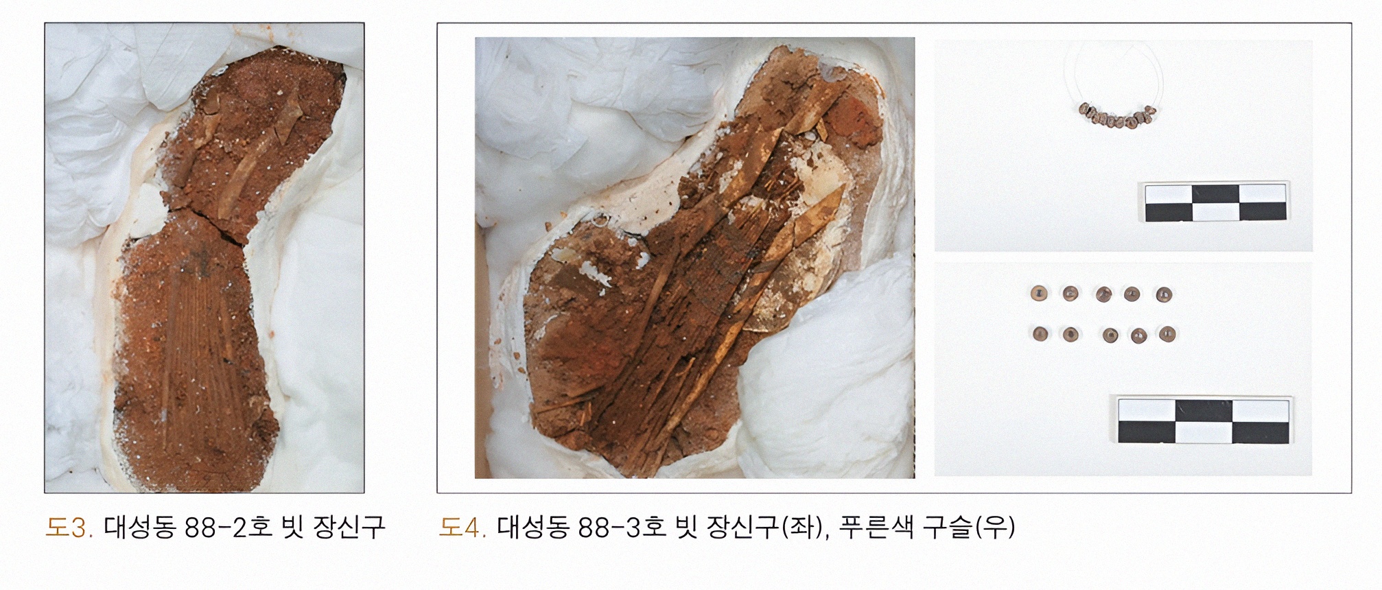 이 사정에 대해서는 지금 현재 그 공식발굴보고서 다운로드에 문제가 있어 저 두 빗을 보존처리한 사람들 보고에 빌려 정리 소개하고저 한다.