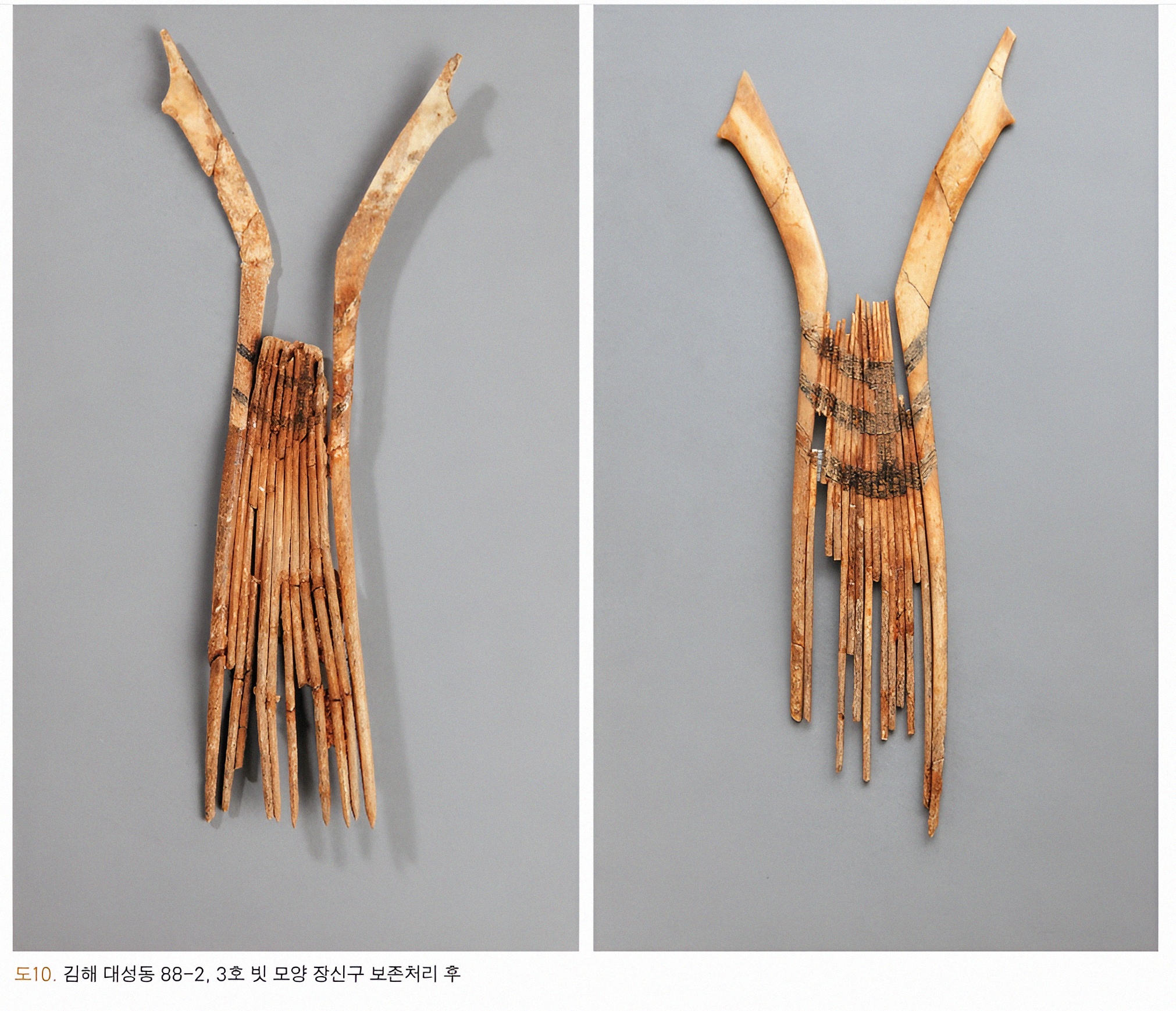 이 빗은 이걸 난중에 보존처리한 국립김해박물관 친구들이 복원한 양상을 보면 아래와 같아