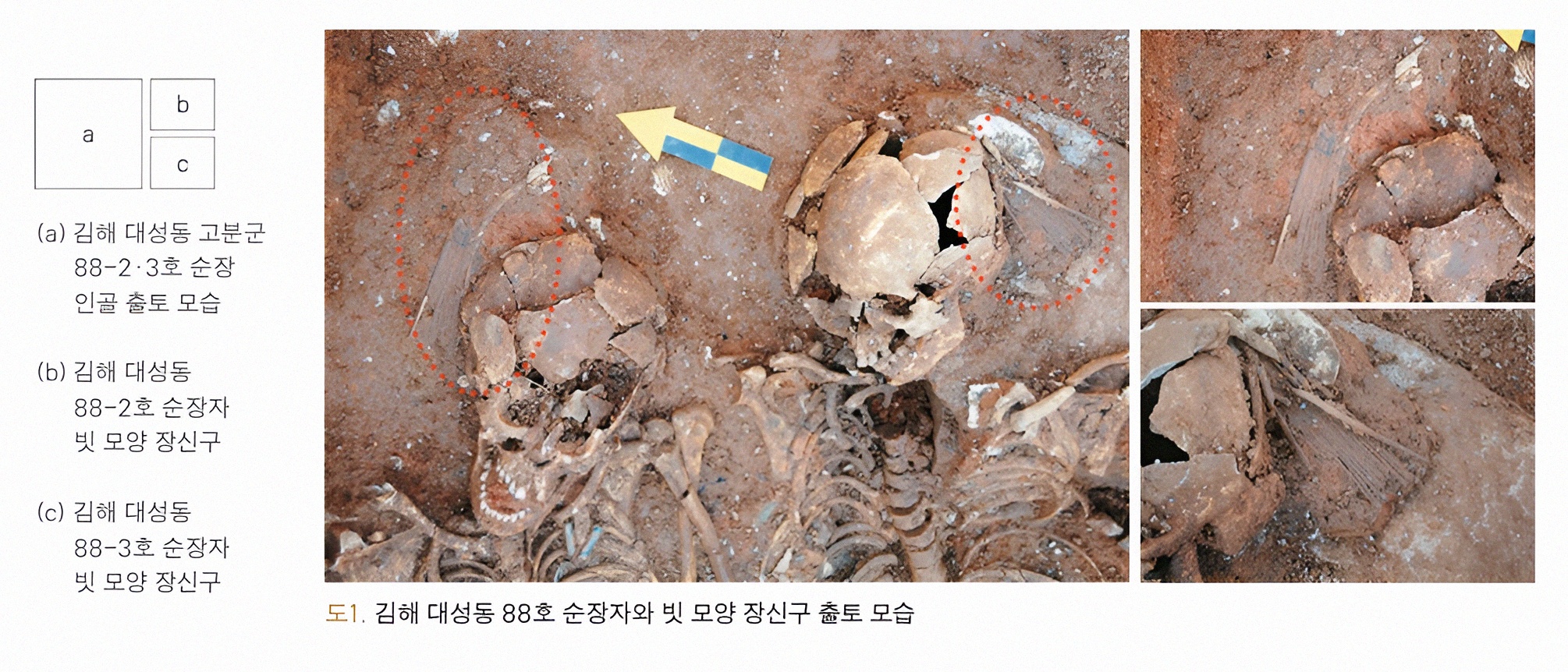 앞이 발굴 당시 순장자와 빗 발견 지점이라