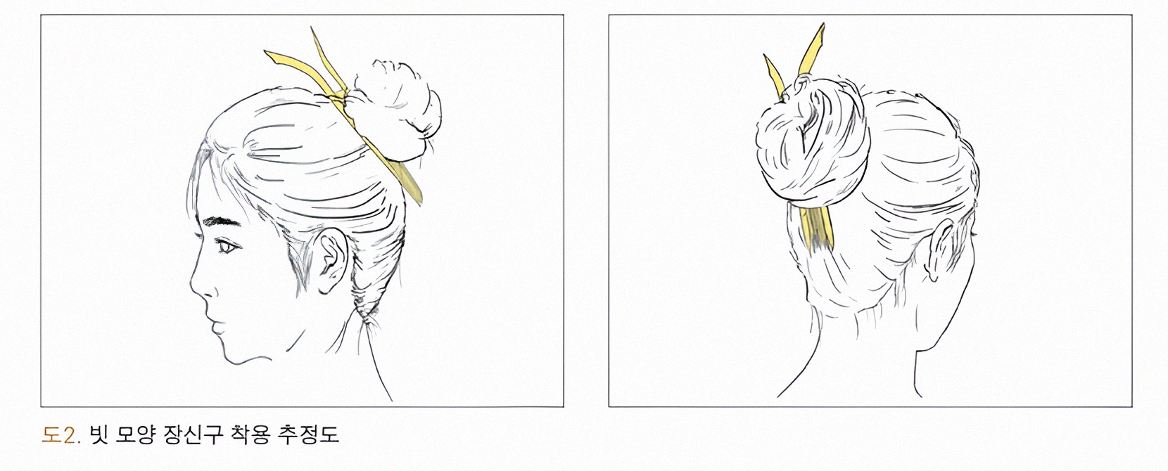 꽂기 위해서는 무엇보다 그 장식이 길쭉해야 하며 또 머리는 틀어올려야 한다.