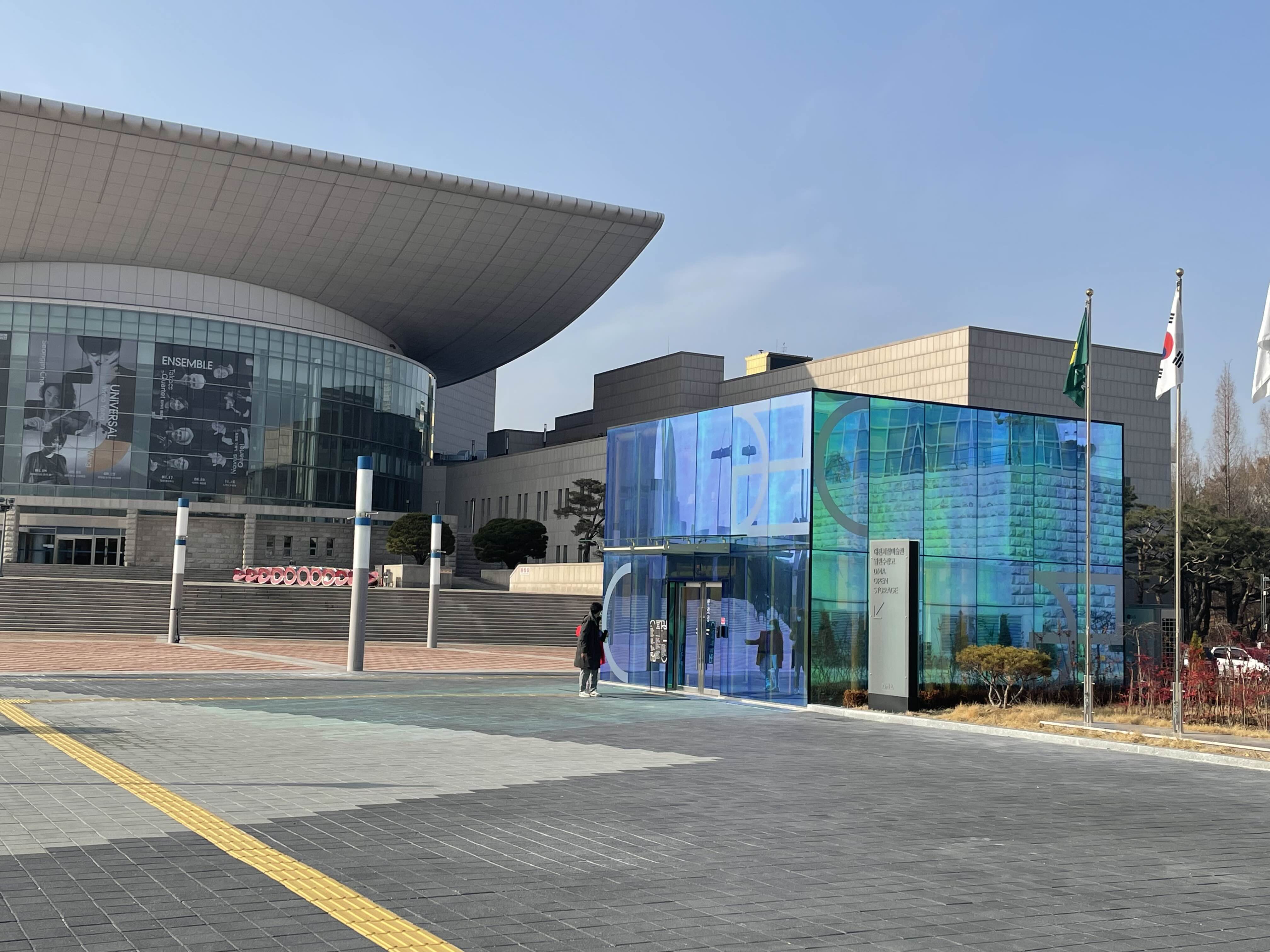 저 큐브 형태 건물에 들어가면, 엘레베이터가 있고 지하로 내려가면 열린수장고 전시가 펼쳐 진다.