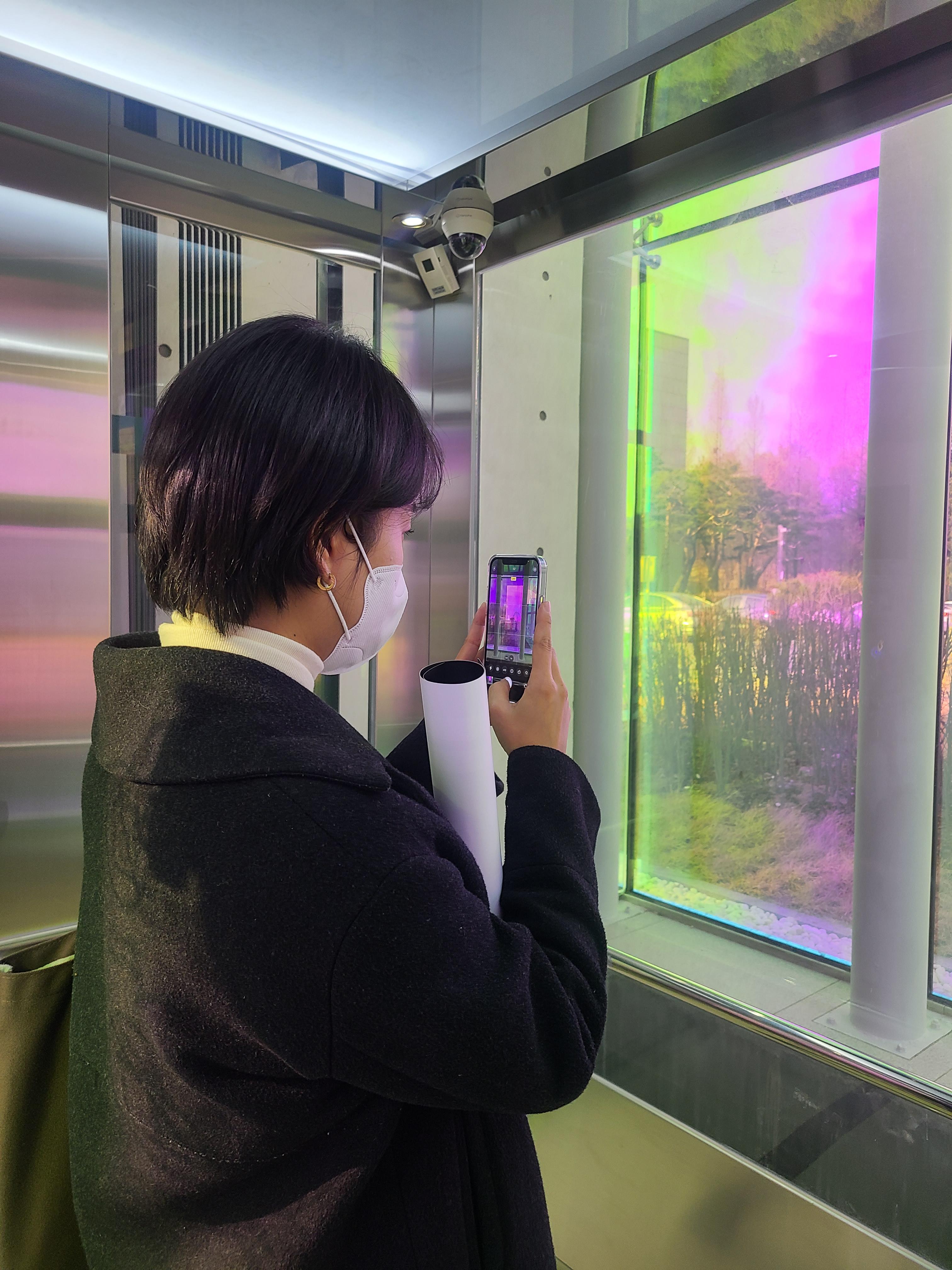 나 : 저 큐브(열린수장고 건물)가 너무 작지 않아요? 작아서 더 눈에 보이는 건가? 아무튼 빛에 따라 달라지는 건 재밌어요.