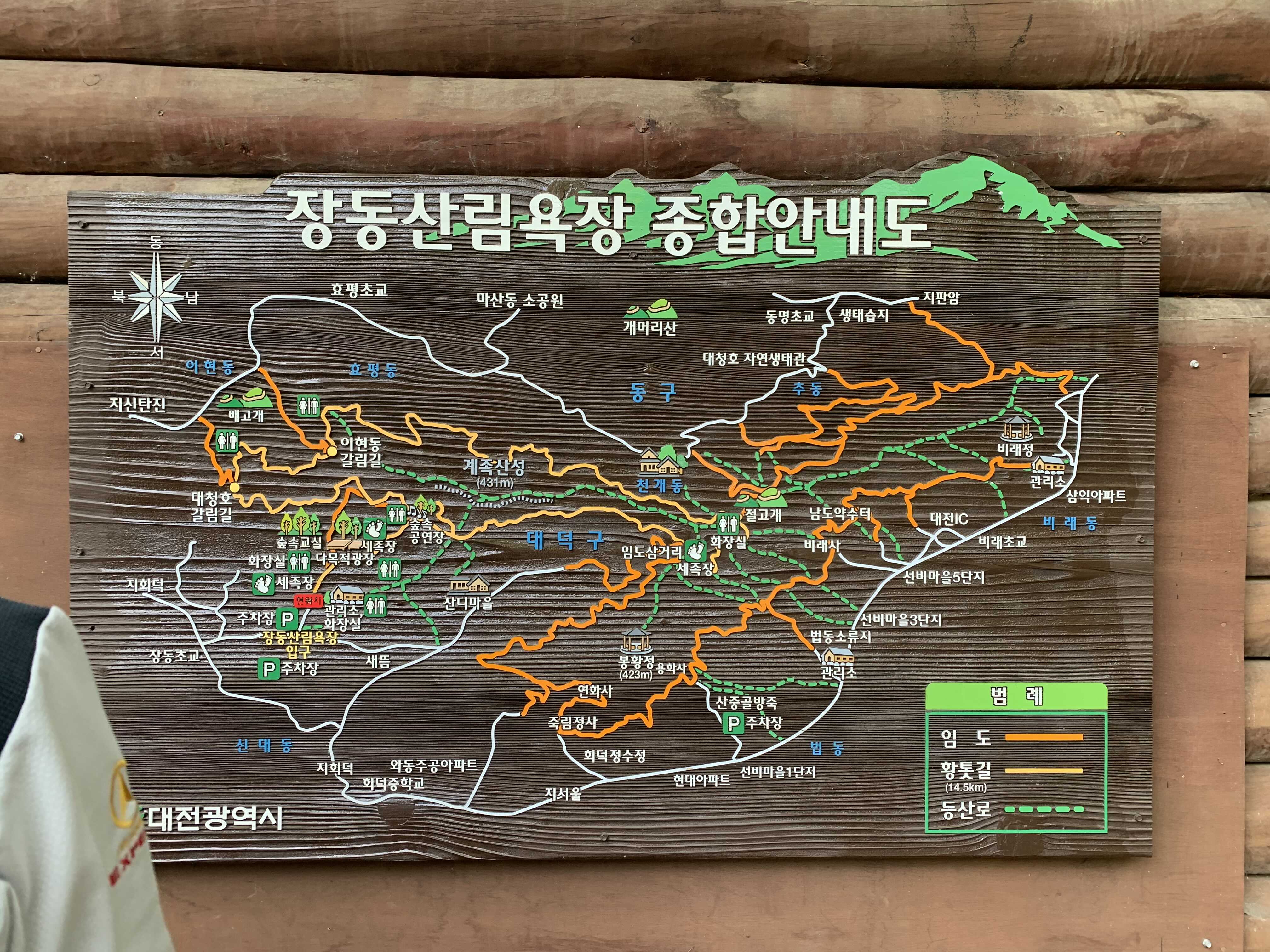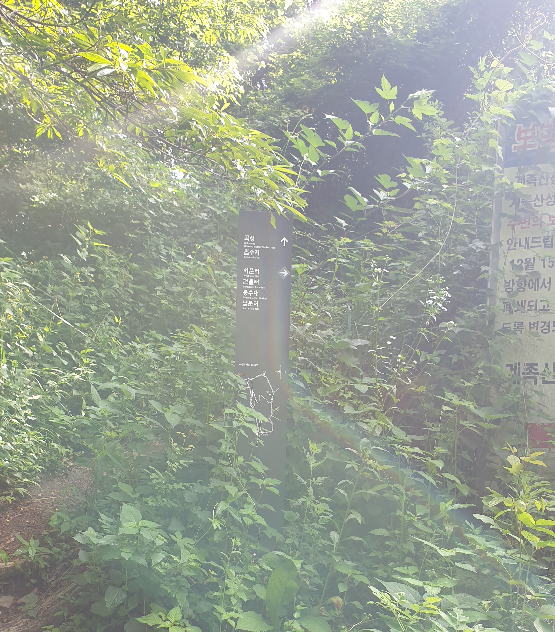 저희는 올라갈 때 정동산림욕장 주차장쪽에서 계족산성으로 가는 다이렉트 코스로 올라갔습니다. 1시간 정도 소요되었습니다. 대신 경사가 가파랐습니다.