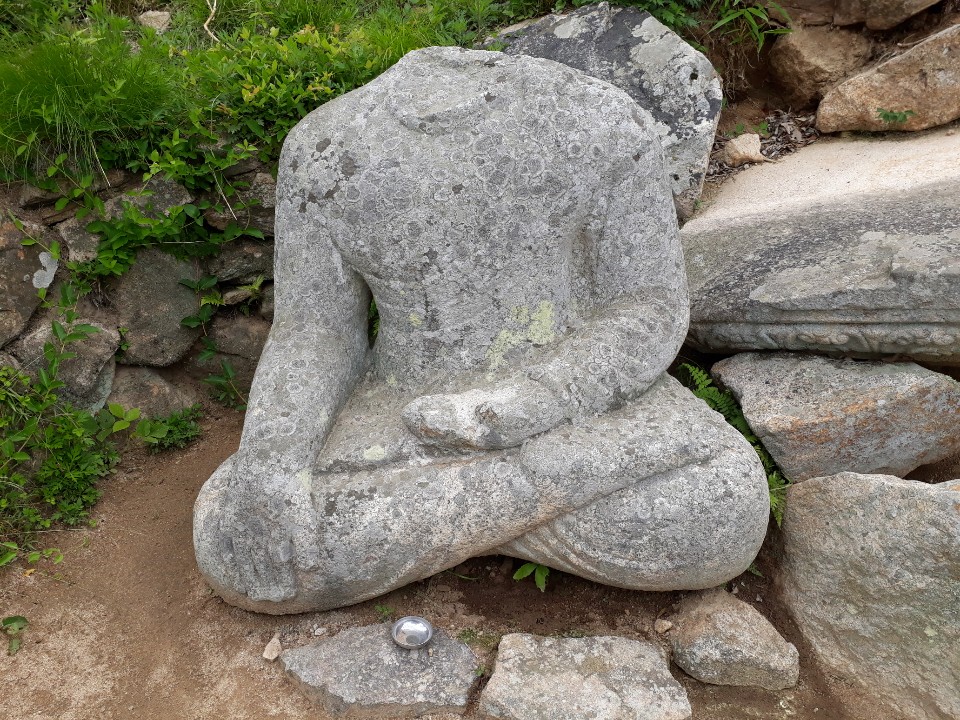 * 머리 없는 석조여래좌상 크기: 높이 109cm, 어깨너비 81cm, 무릎너비 116cm,