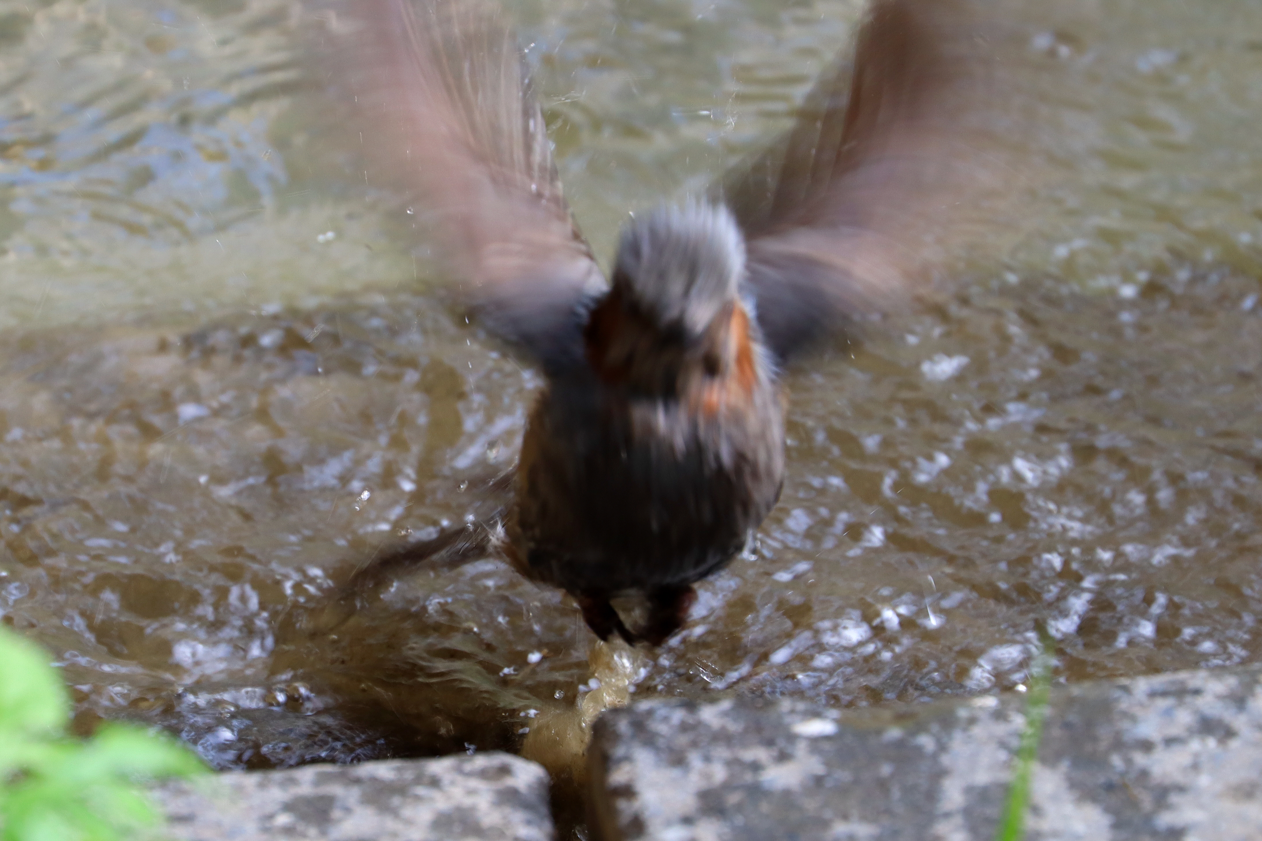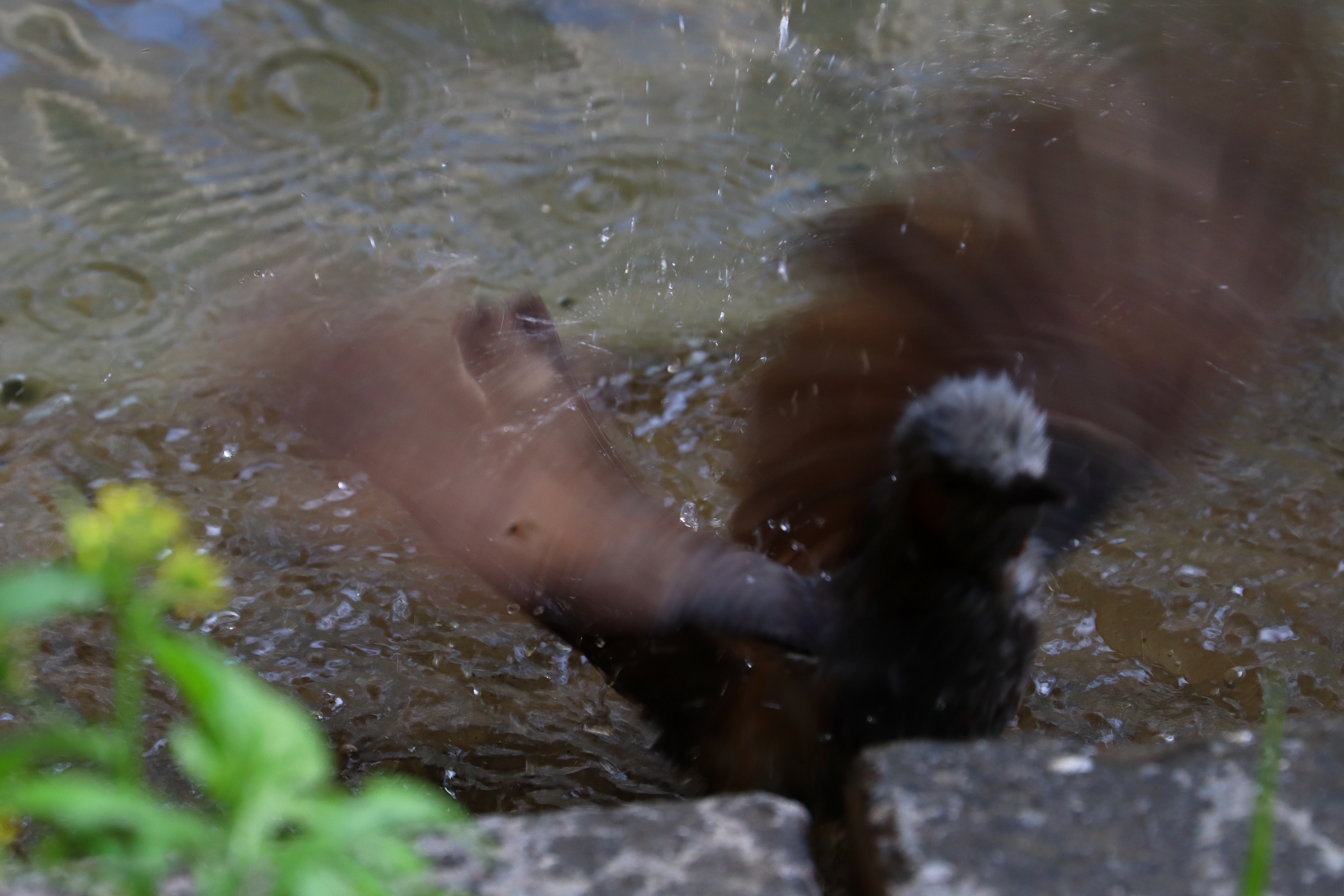 이 놈이 희한한 게 둔덕에서 한 대 빠는 나를 빤히 꼬나보면서 물속과 저 돌삐를 왔다갔다 하면서 물을 담갔다가 털어내고 하는 일을 반복하는 것이 아닌가?