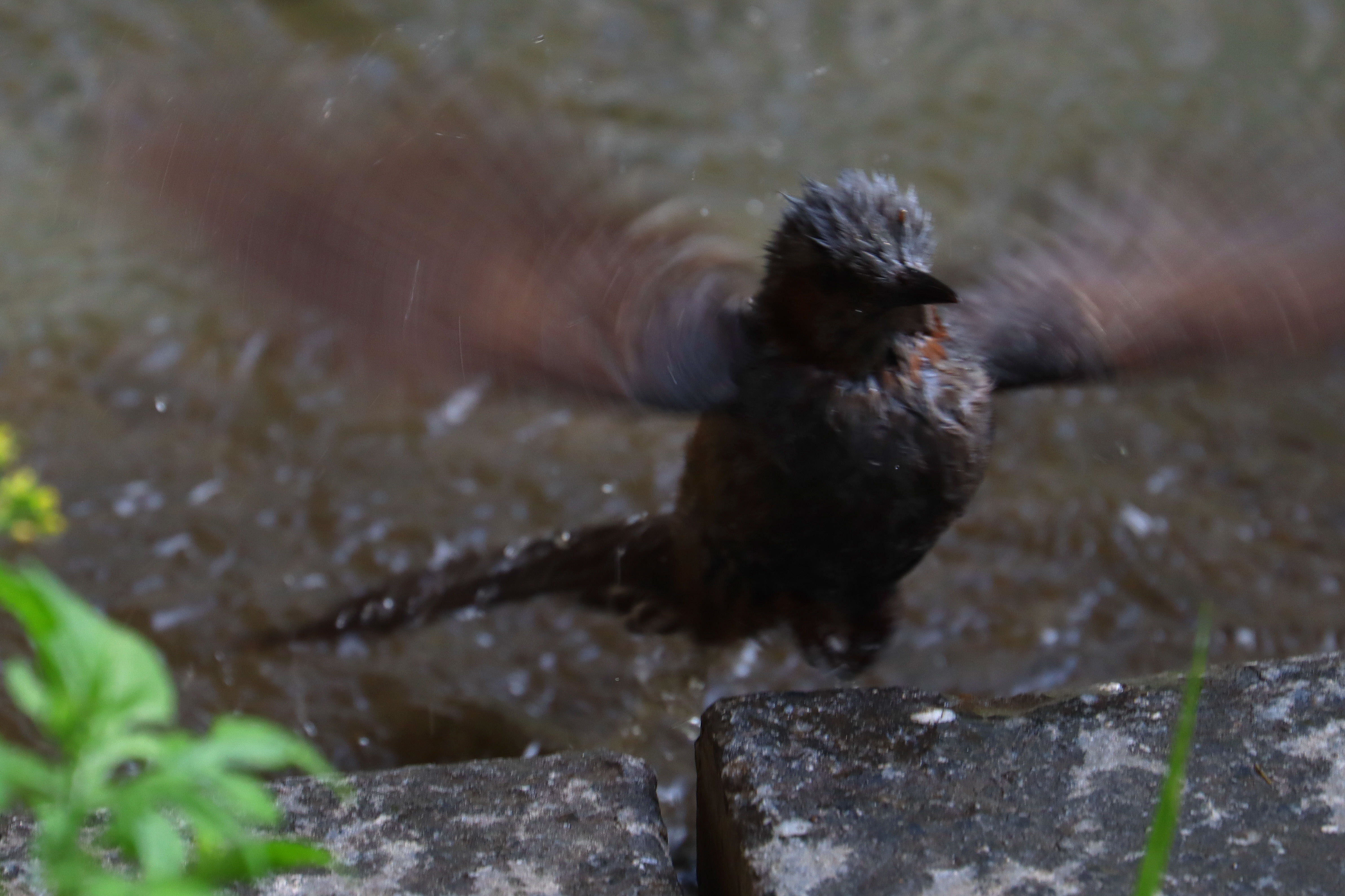 이 놈이 희한한 게 둔덕에서 한 대 빠는 나를 빤히 꼬나보면서 물속과 저 돌삐를 왔다갔다 하면서 물을 담갔다가 털어내고 하는 일을 반복하는 것이 아닌가?