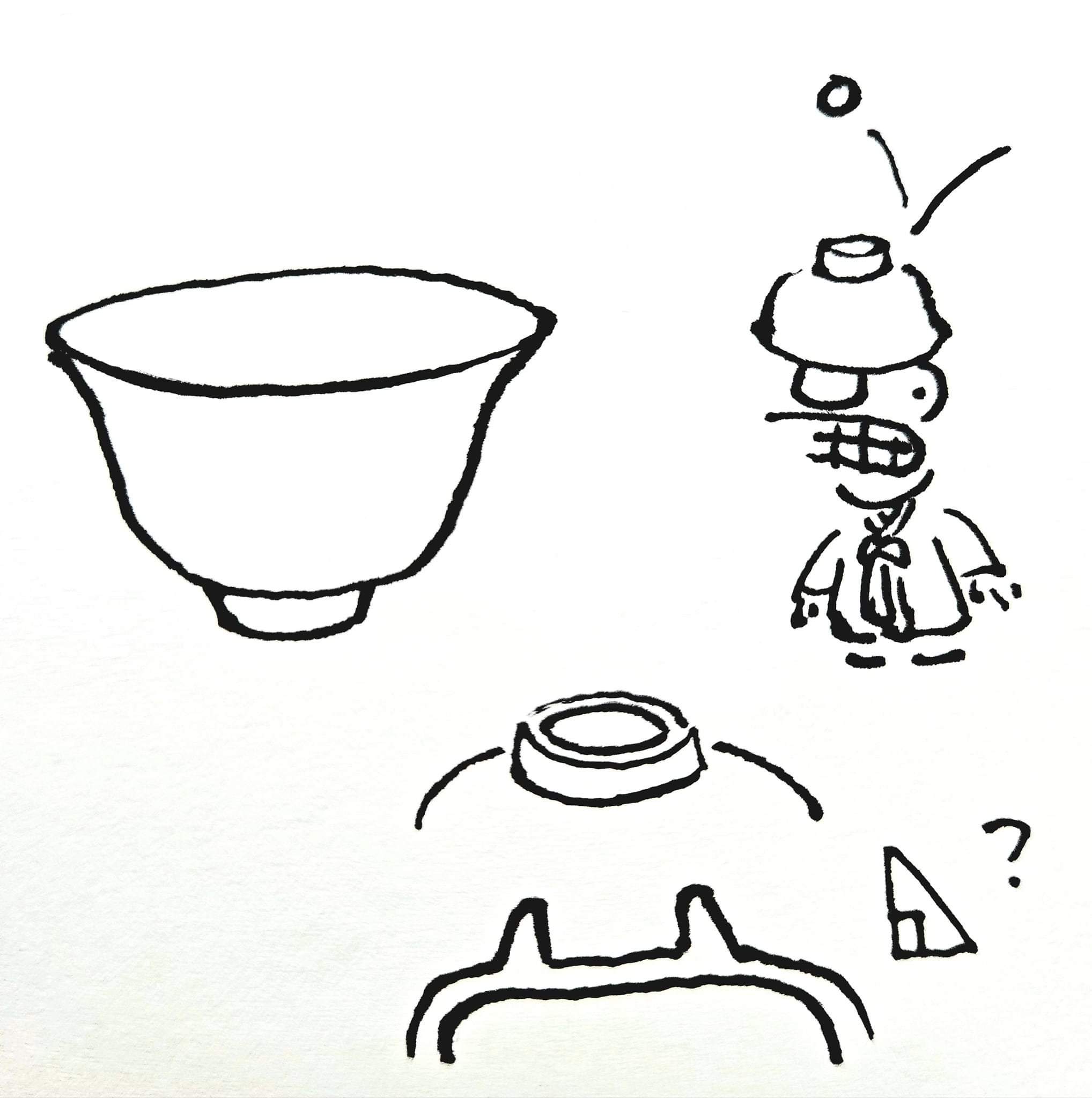 도자사 책을 보면 이 사발의 굽 모양을 '도립삼각형'이라고 하는 경우가 많다. 거꾸로 선 삼각형이라니 도대체 무슨 뜻인가 했는데, 아무래도 굽 단면도를 보고 그렇게 이야기하는가보다. 꼭짓점이 아래에 있어서 거꾸로 선 삼각형인지?