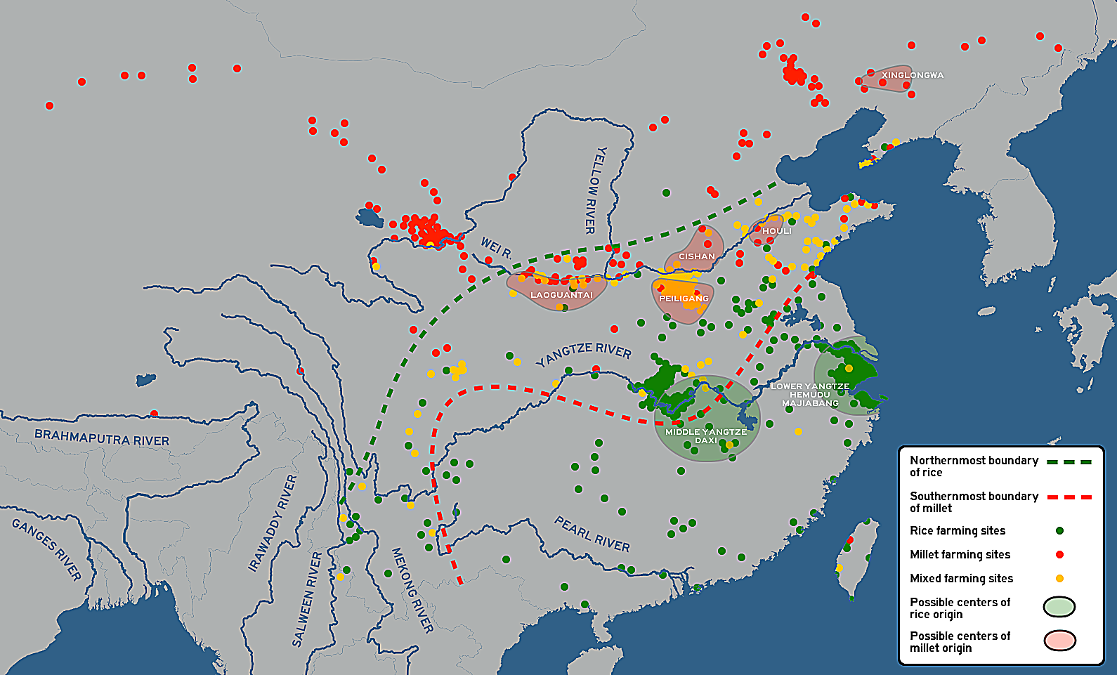 따라서 잡곡 농경의 기원을 소급하여 따라 올라가면