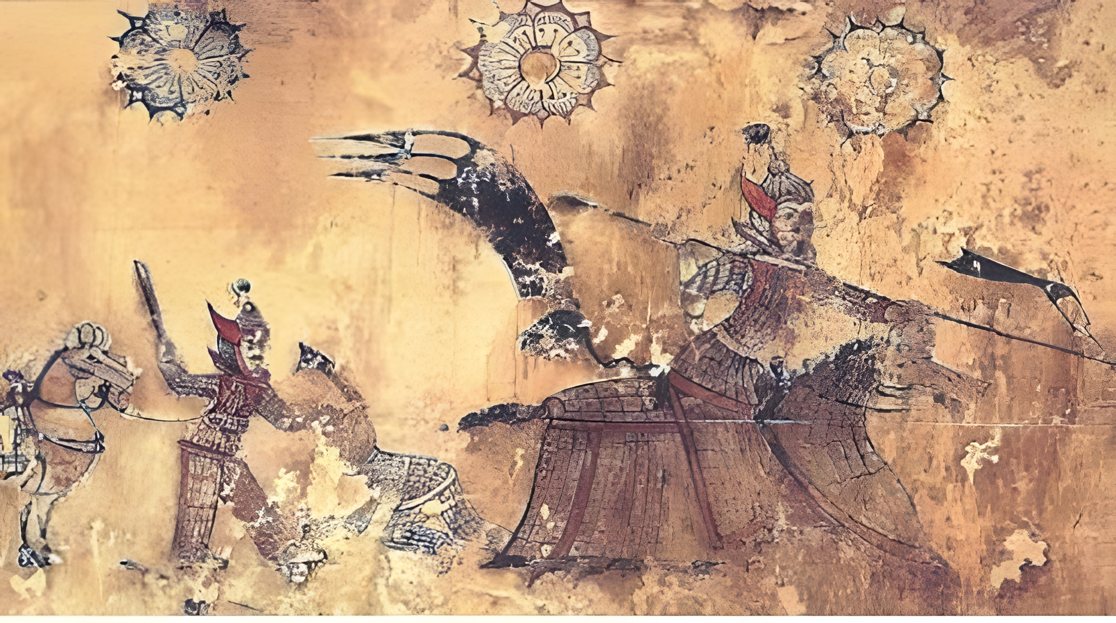 그 한 쪽에서는 그렇게 중무장한 군인이 아마도 사로잡은 적군 괴로 장수 혹은 우두머리를 참수하는 장면이 있거니와