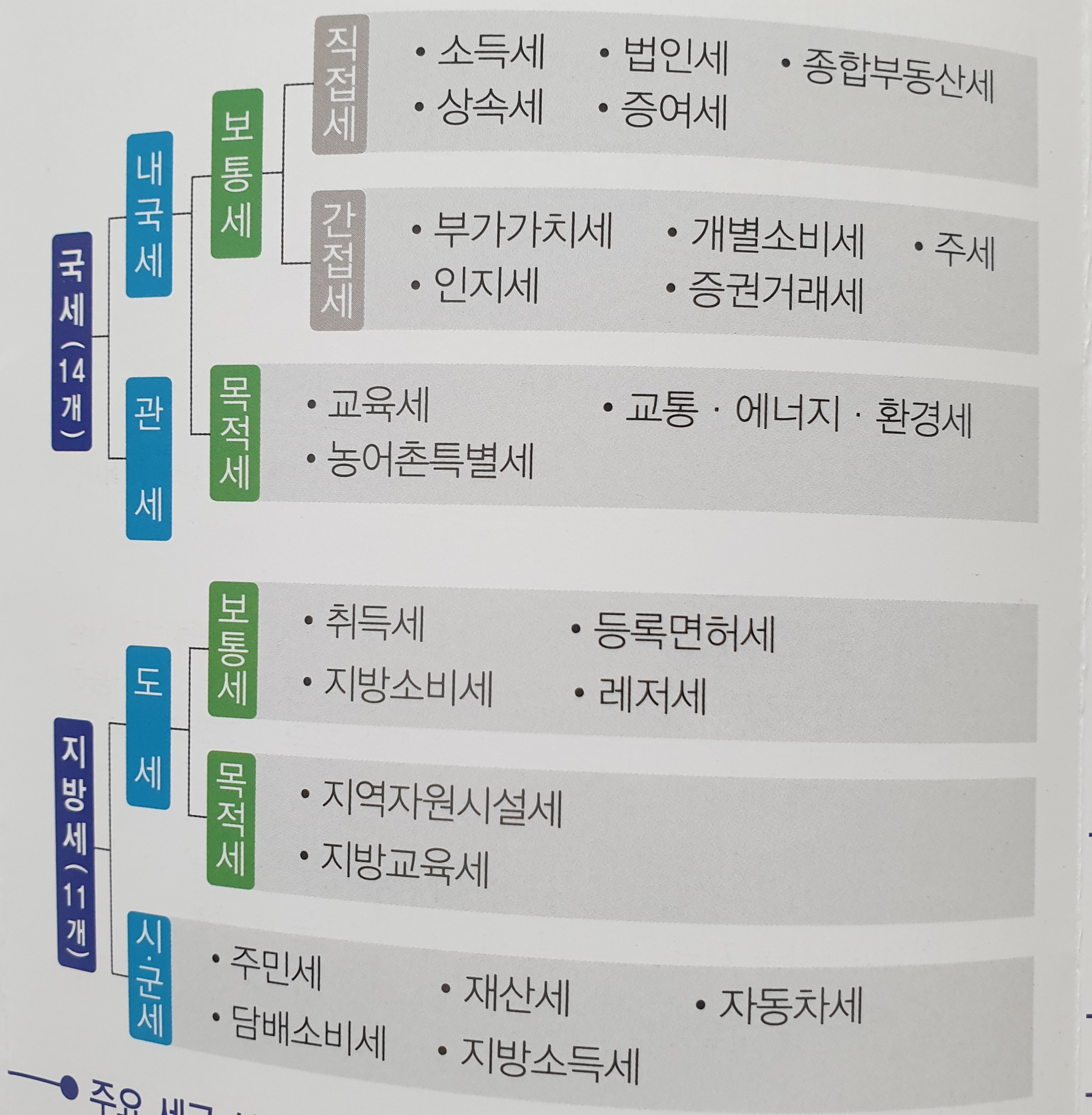 첫째 과세 주체가 누구냐에 따른 분류니, 중앙정부가 주체인 세금을 국세라 하고, 지자체가 주체인 세금을 지방세라 한다.