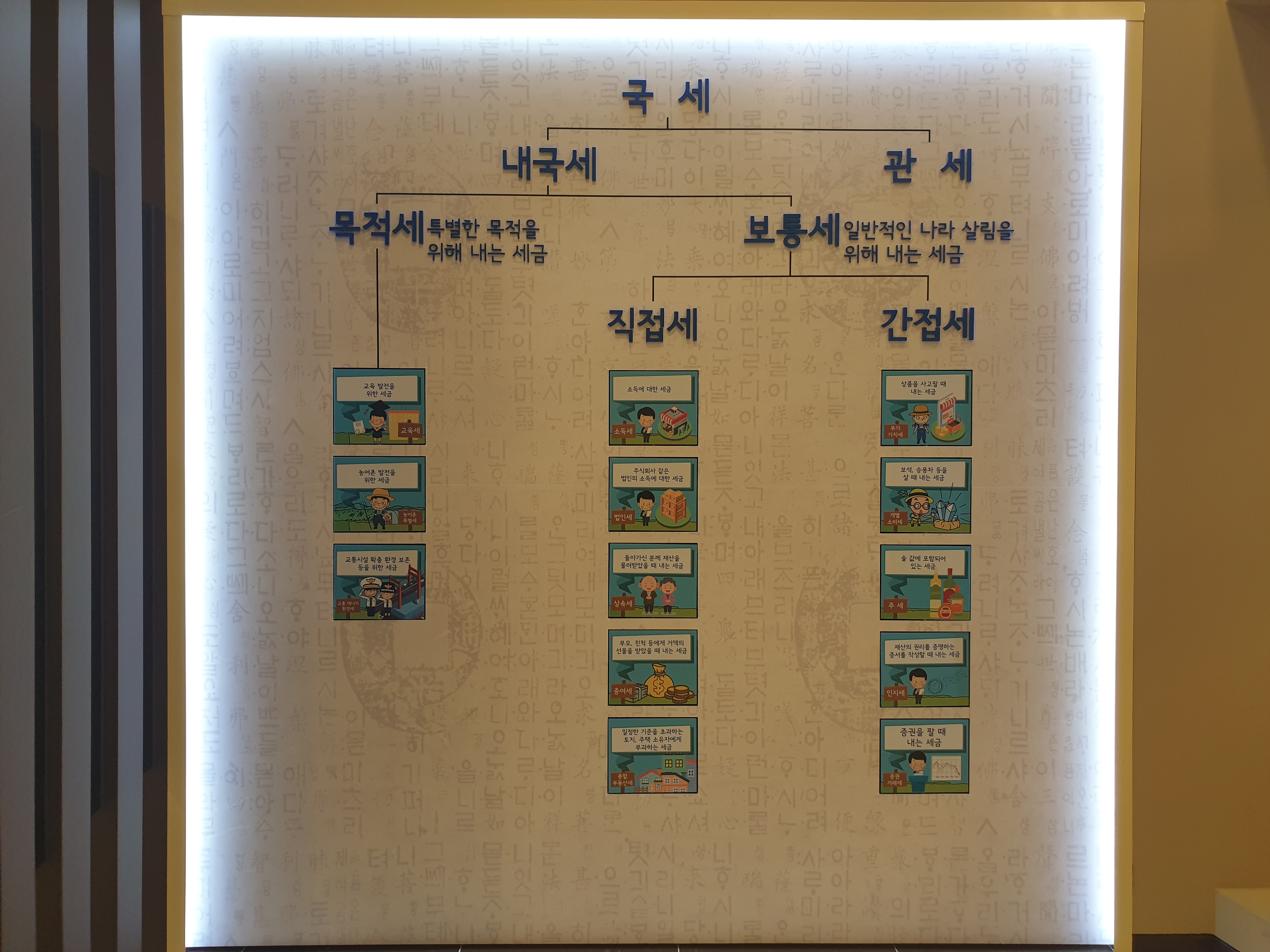 저런 세금은 다시 하부에서 여러 기준에 따라 분류하거니와 예컨대 국세는 다시 국경을 기준으로 그 안에서 징수하는 경우를 내국세라 하고 국세청이 징수를 담당하며, 국경에서 징수하는 경우를 관세라 하며 관세청서 징수한다.