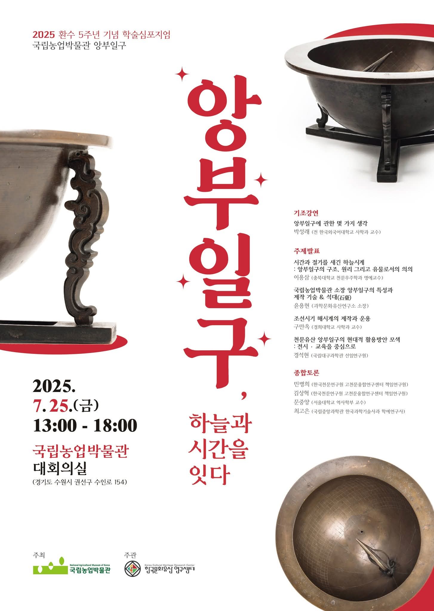 7월 25일(금) 국립농업박물관에서 앙부일구 환수 5주년을 기념하는 학술심포지엄을 개최합니다.