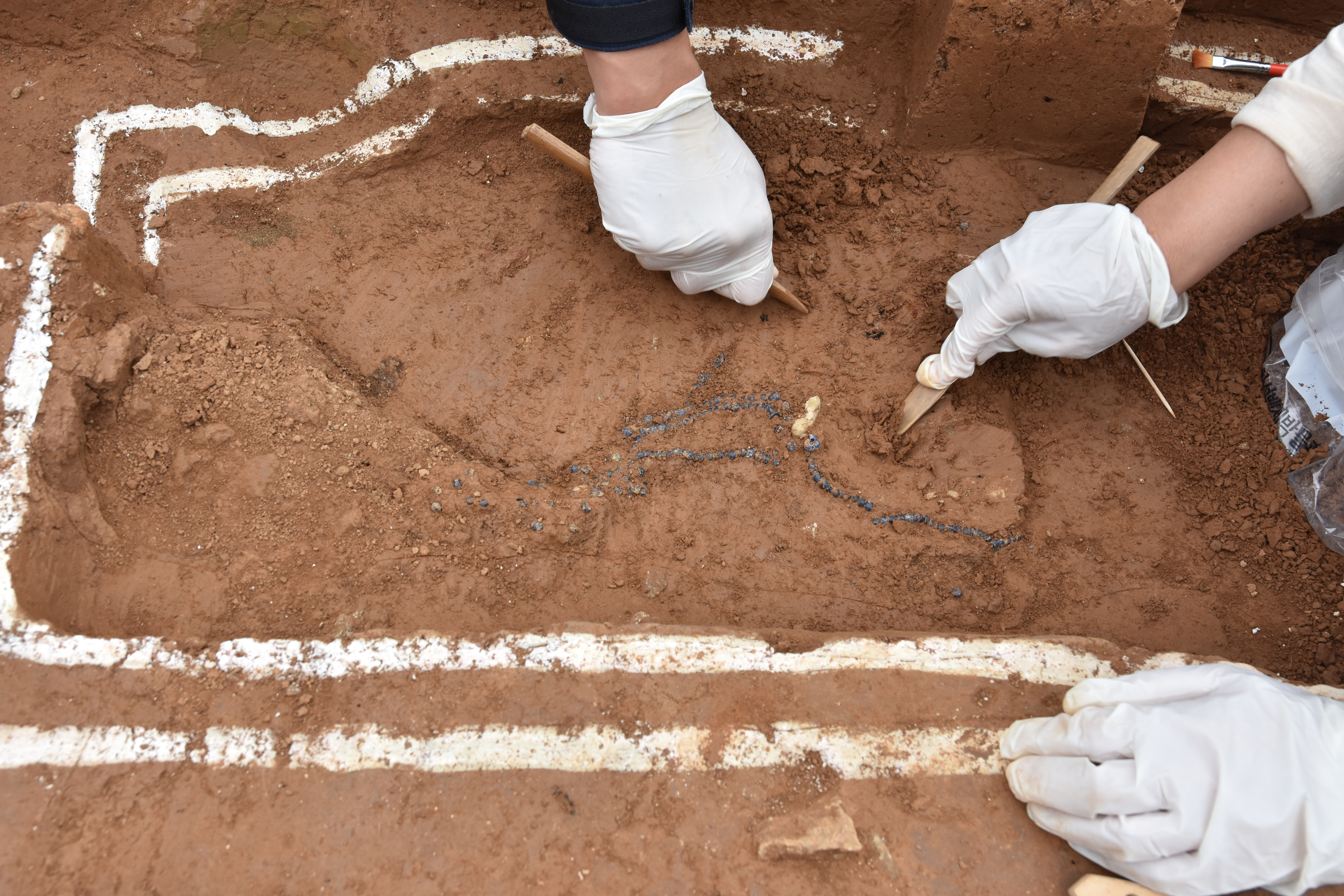 □ 8호 적석묘 아래에서 조사된 중국제 흑유계수호(흑유 닭 모양 항아리)는 한성백제박물관 개관 10주년 특별전시회(2022년 10월 27일∼2023년 1월 29일)에 출품 중이다. 이번 발굴조사 현장설명회에서는 유리구슬 목걸이를 비롯한 다양한 유물과 유적의 조사 과정을 볼 수 있다.