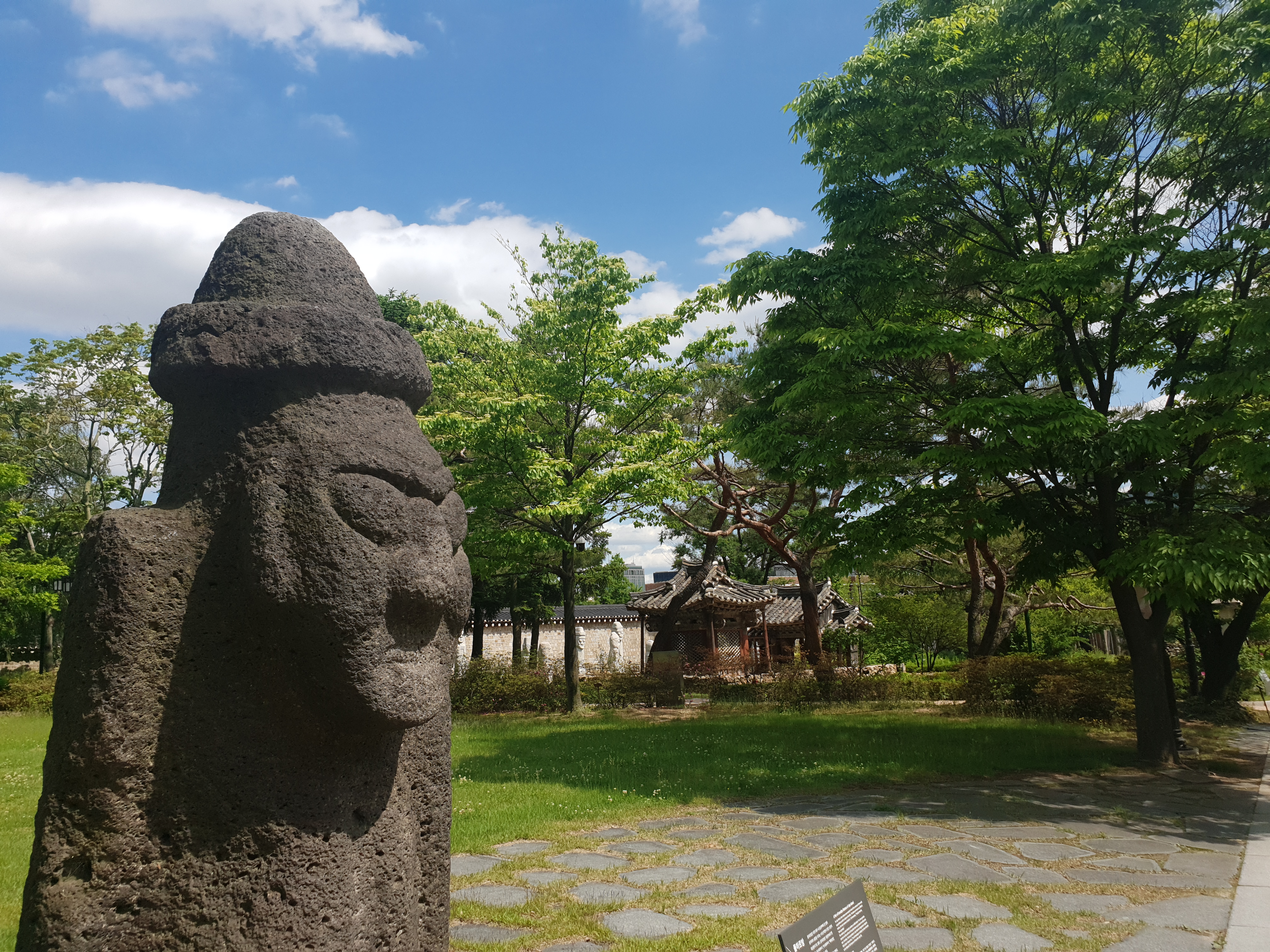 The dol-hareubang on display has been relocated to the National Folk Museum of Korea from Jeju City.