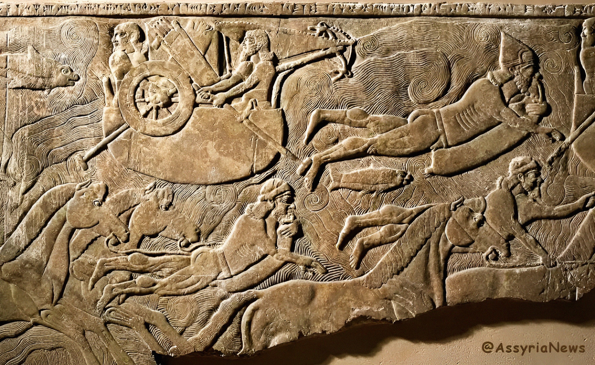 이 패널 인물들은 부분적으로 물에 잠기는 것이 아니라 전체적으로 묘사되어 있는데, 이는 아시리아 예술의 특징이다.