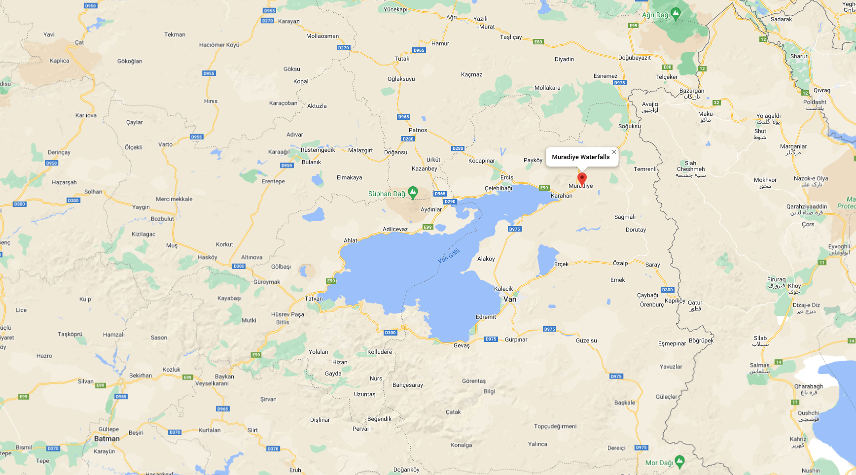Muradiye 폭포는 Muradiye 지역 경계 내에 위치하고 있으며 Van 중심에서 80km 떨어져 있다.