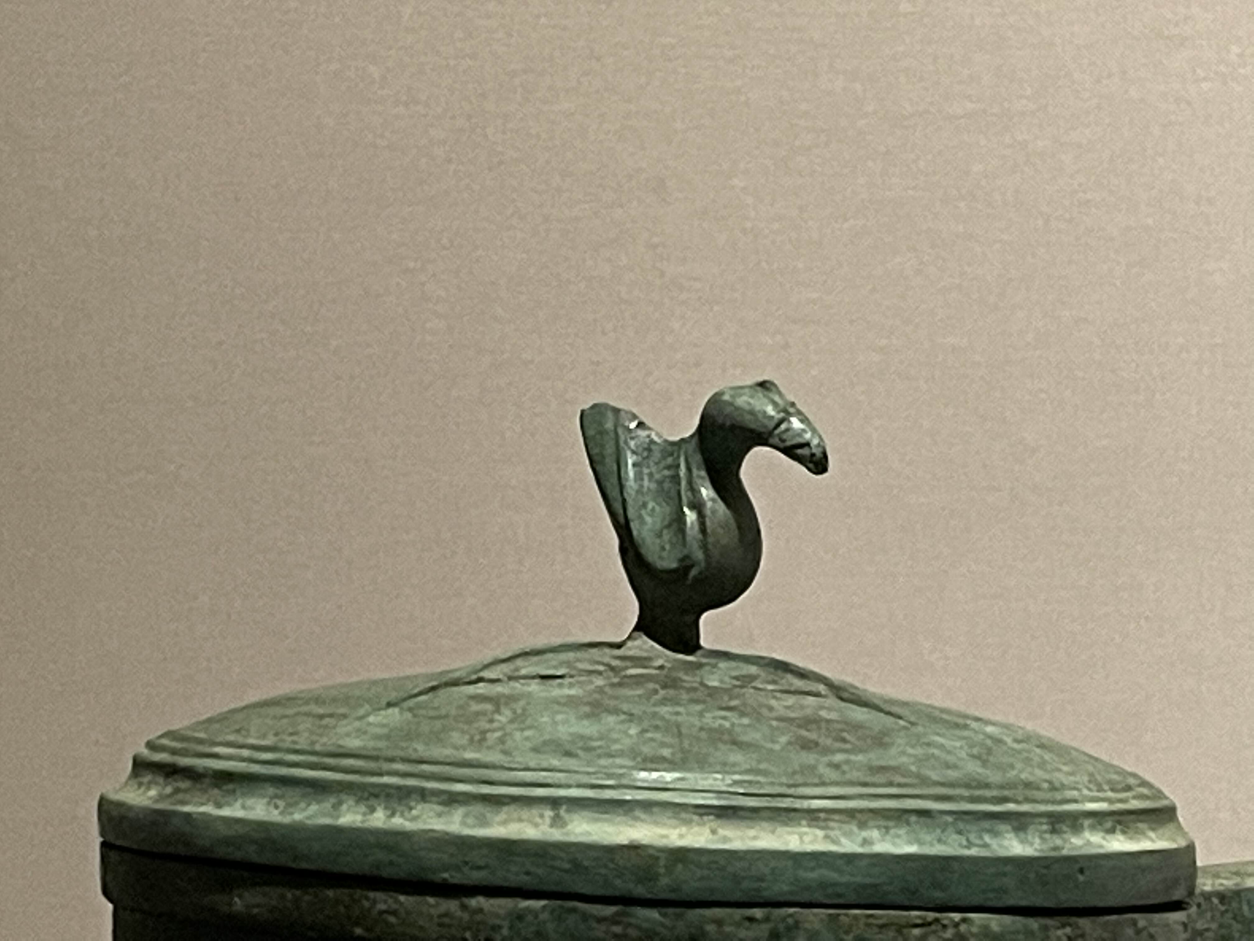 뚜껑의 손잡이 위에 새가 앉아 있고, 잔 손잡이에도 새가 앉아 있군요. 예전에는 새가 땅과 하늘, 삶과 죽음을 이어준다는 믿었다는데, 그래서 이렇게 새 모양을 한 유물이 많은 건가요? 관련 유물들은 대부분이 의식용, 부장품 이었을까요? 저 오늘 물음표 살인마지요???ㅋㅋㅋ