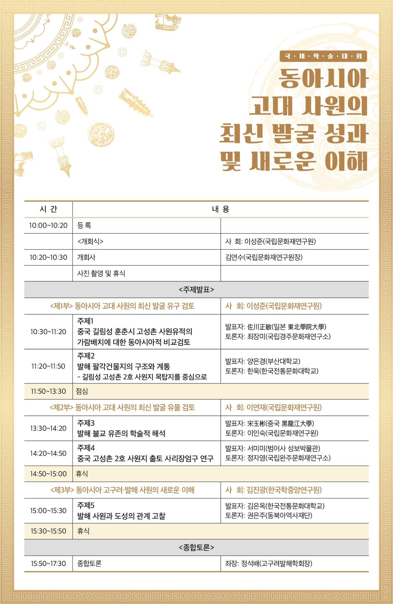 주제 : 동아시아 고대 사원(寺院)의 최신 발굴 성과 및 새로운 이해 국제학술대회