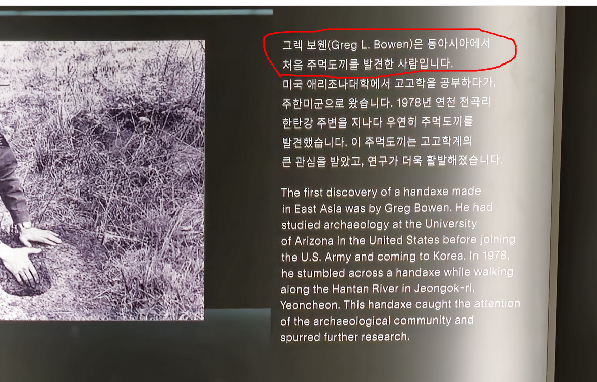 그렉 보윈이 "동아시아에서는 처음으로 주먹도끼를 발견한 사람입니다"고 했거니와