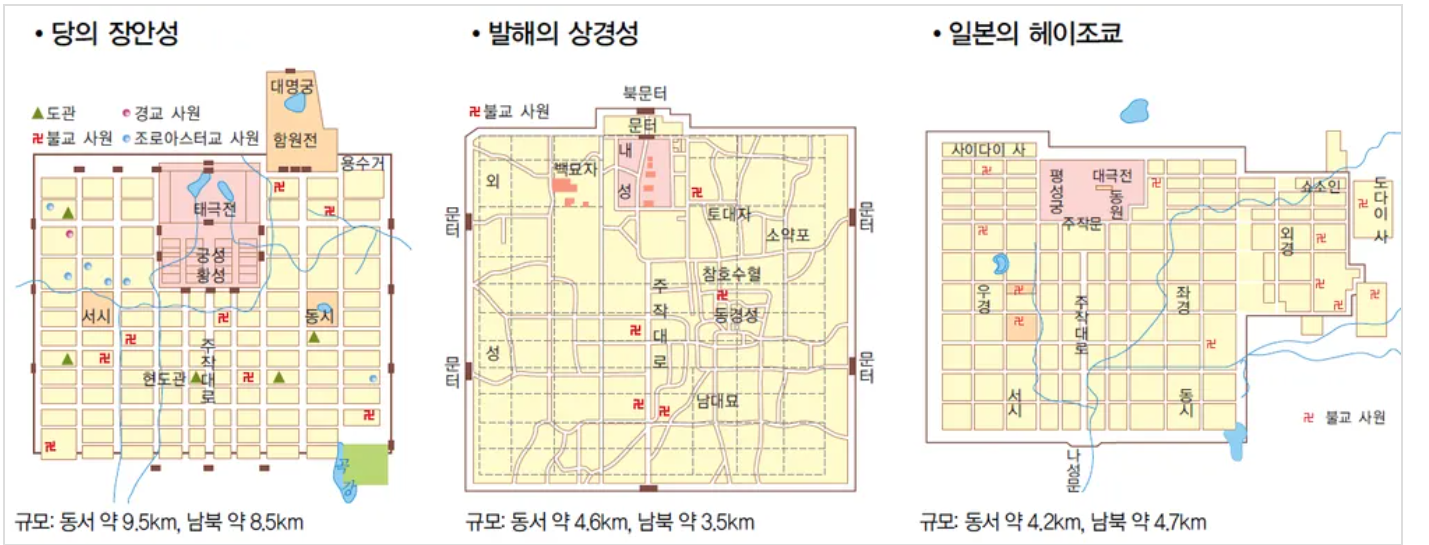 상경용천부는 일본의 헤이죠쿄, 헤이안쿄와 판박이다.
