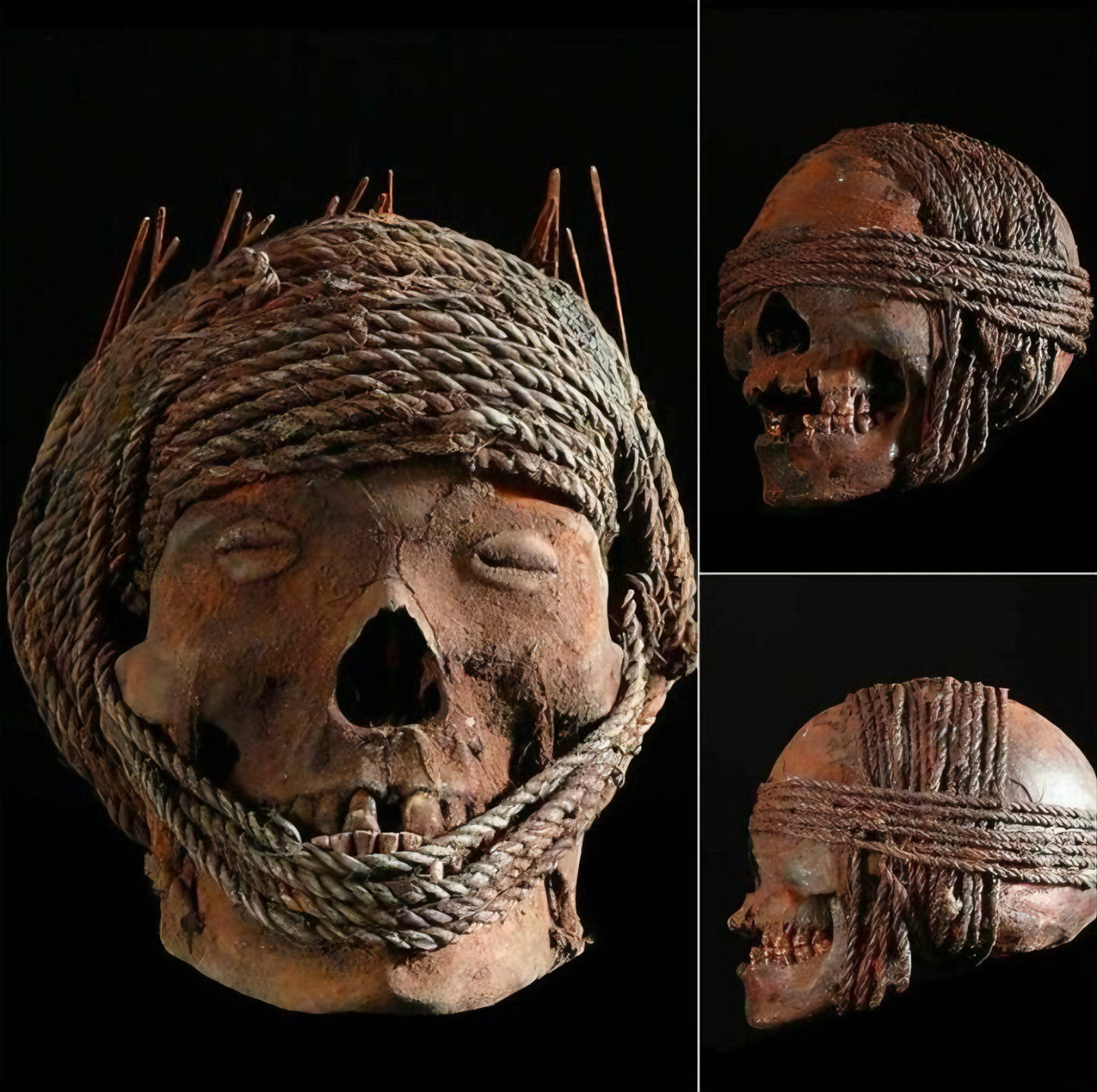 한데 왜 조상 두개골을 저리 끈으로 칭칭 매지? 매달기 위해서인가?