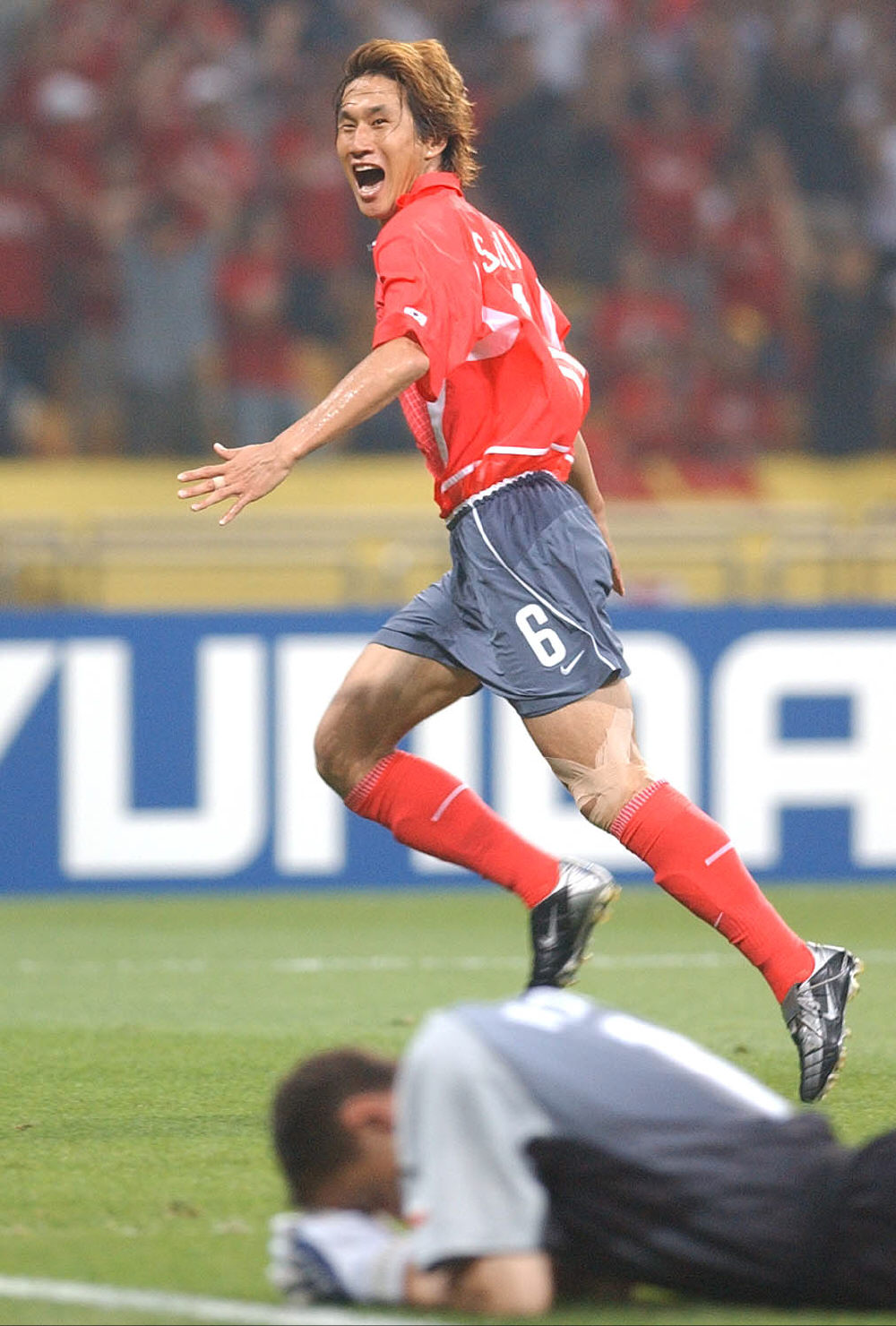 2002년 6월 4일 저녁, 부산에서 열린 한일월드컵 D조 조별리그 첫경기 폴란드 전에서 중거리슛으로 한국에 두 번째 골을 선사한 직후 포효하는 유상철 모습이 낙담한 폴란드 골기퍼 두덱과 절묘한 대비를 이룬다.