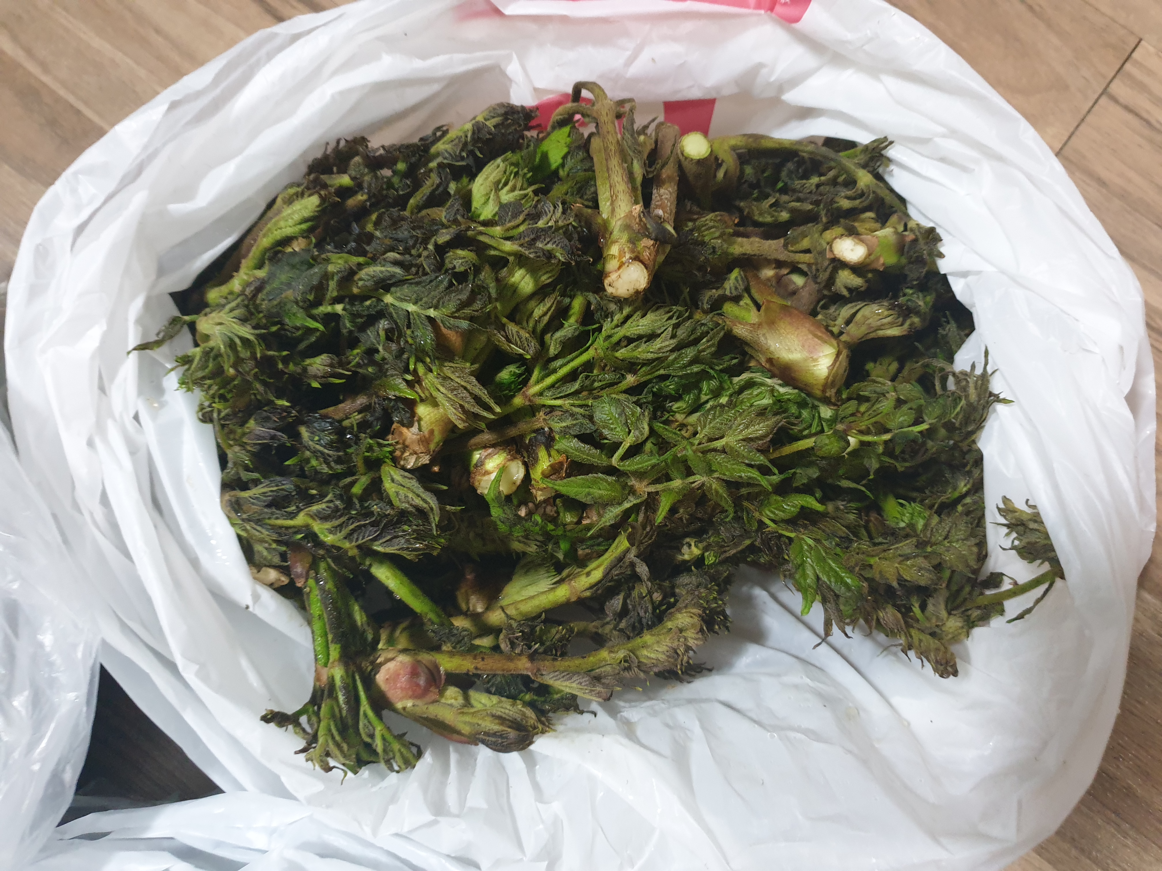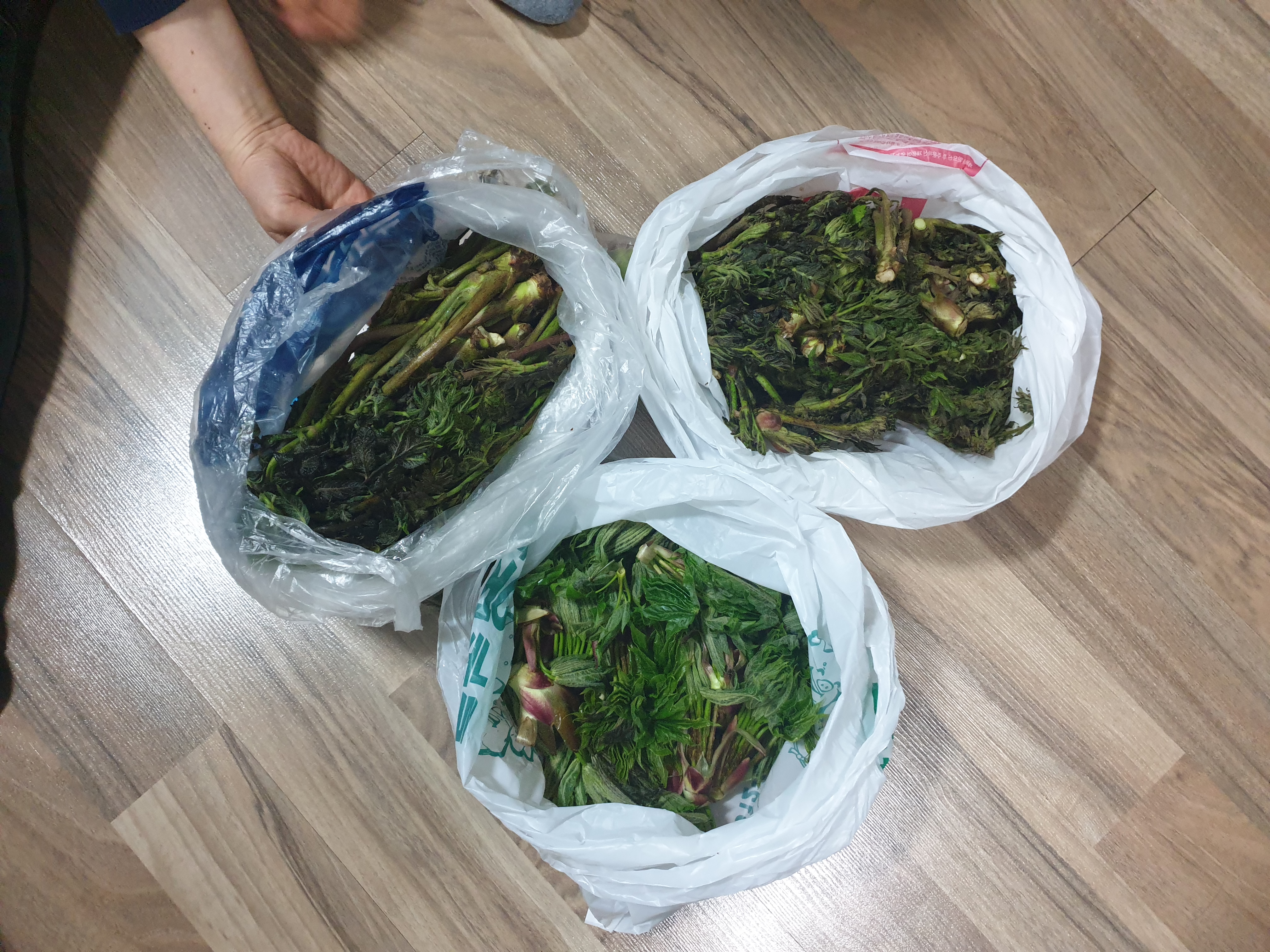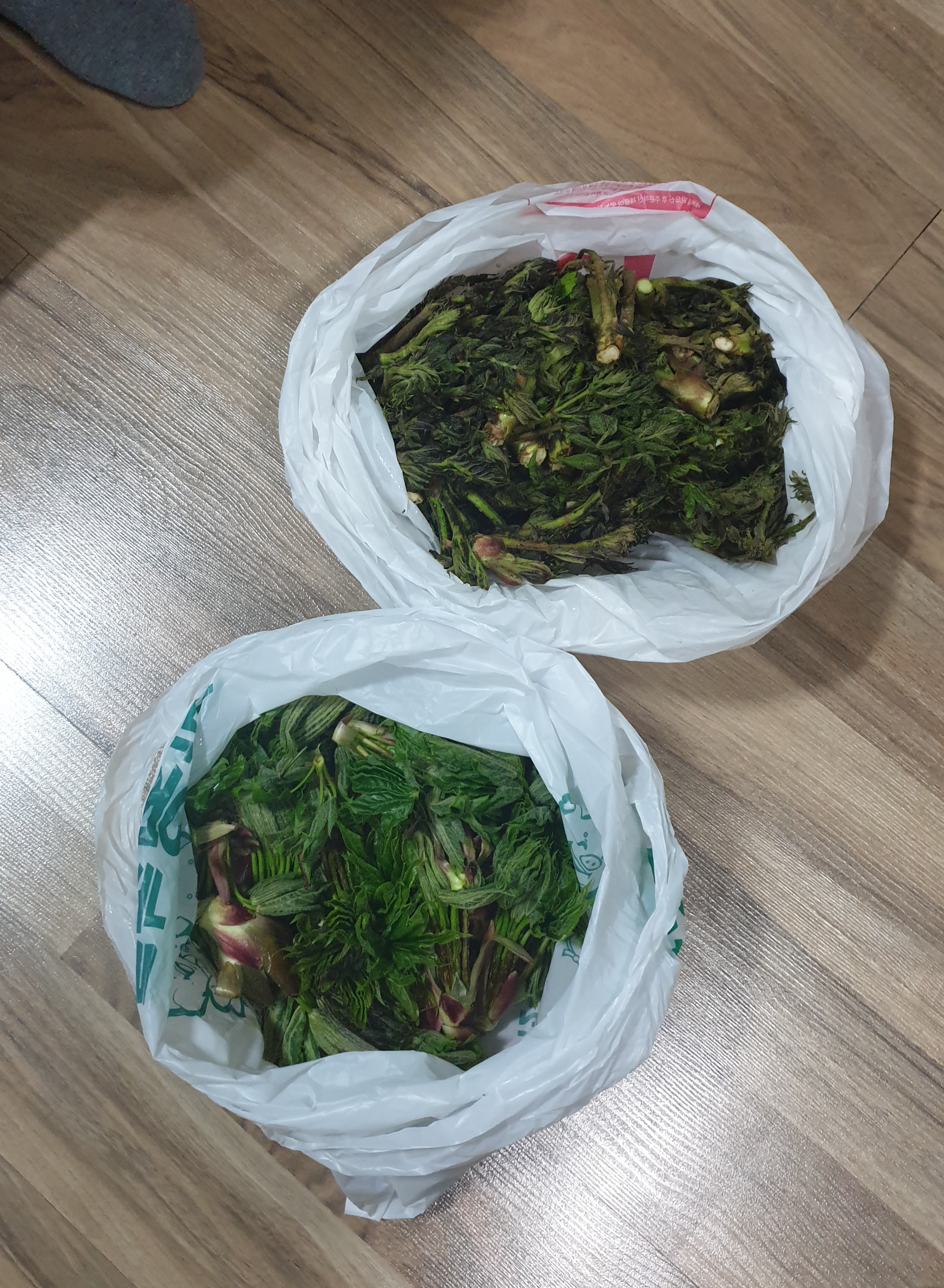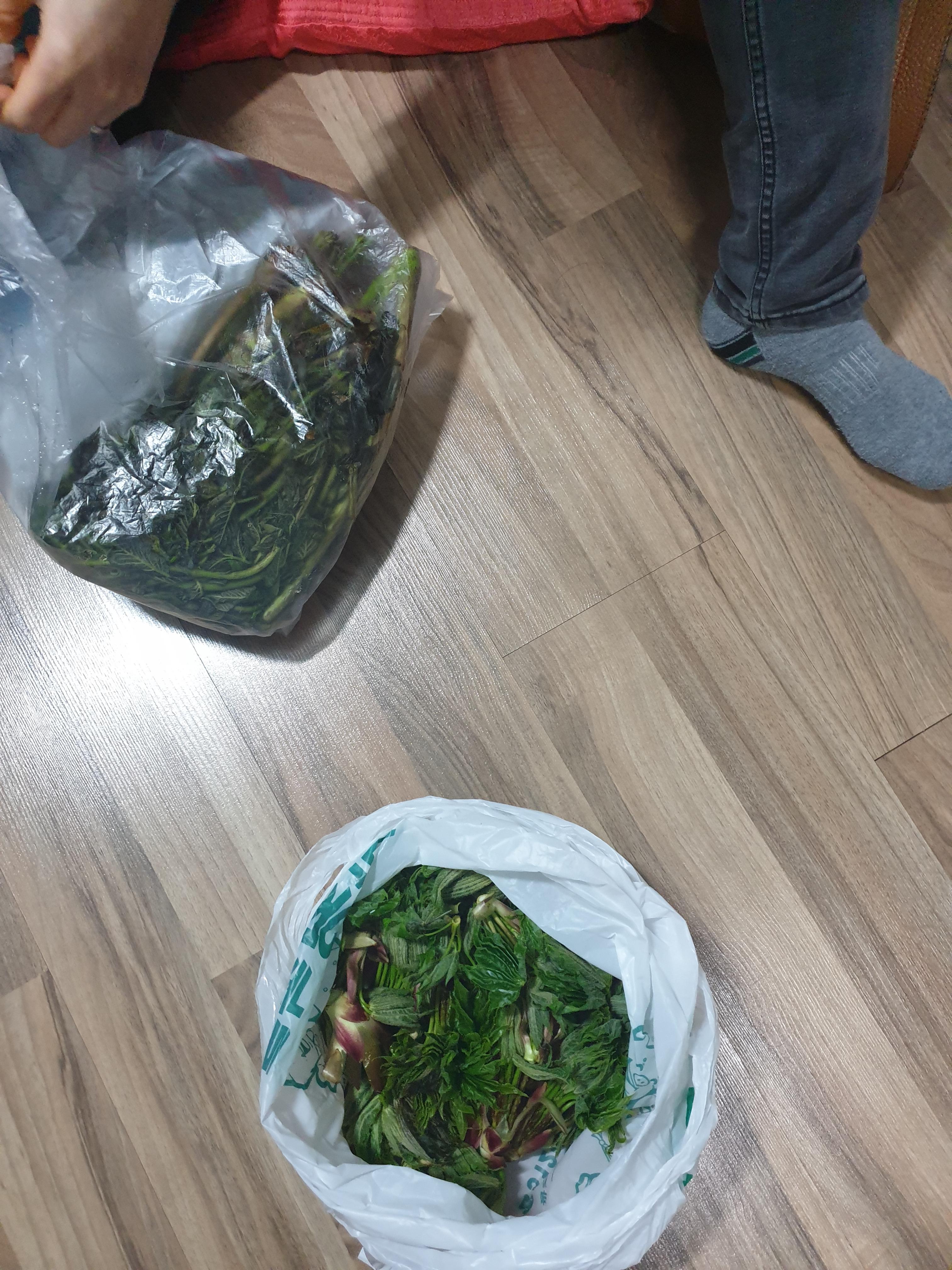 두릅은 좀 마이 피어 짱아치로 적당한 거랑 갓순이랑 갈라놨고